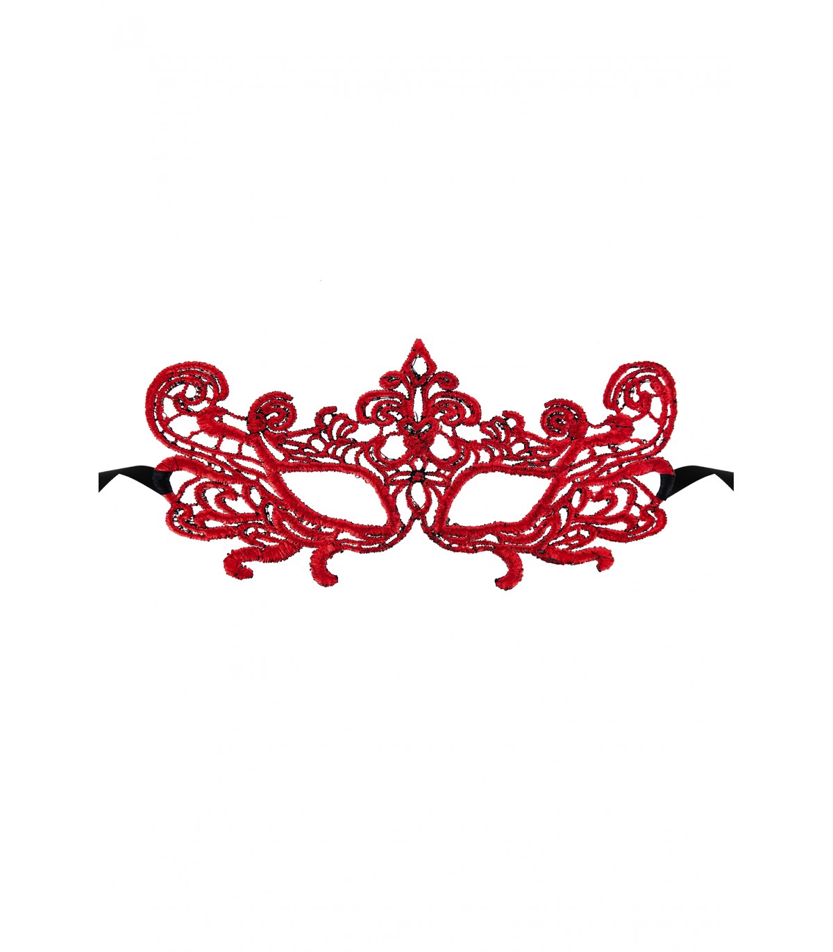 Flexible Maske aus Guipure mit zwei Satinbändern an den Seiten für eine bessere Anpassung an jede Größe.