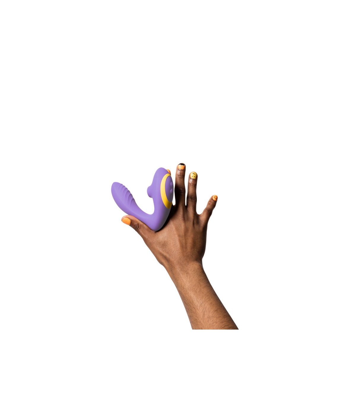 Beide Elemente werden kombiniert, um zwei Arten der Stimulation zu bieten, interne und externe, mit denen kraftvolle kombinierte Orgasmen erzielt werden. Er bietet zehn Saugstufen, drei Vibrationsgeschwindigkeiten, sieben Vibrationsmuster und einen Sicherheitsverschluss. Es ist wiederaufladbar und wasserdicht.