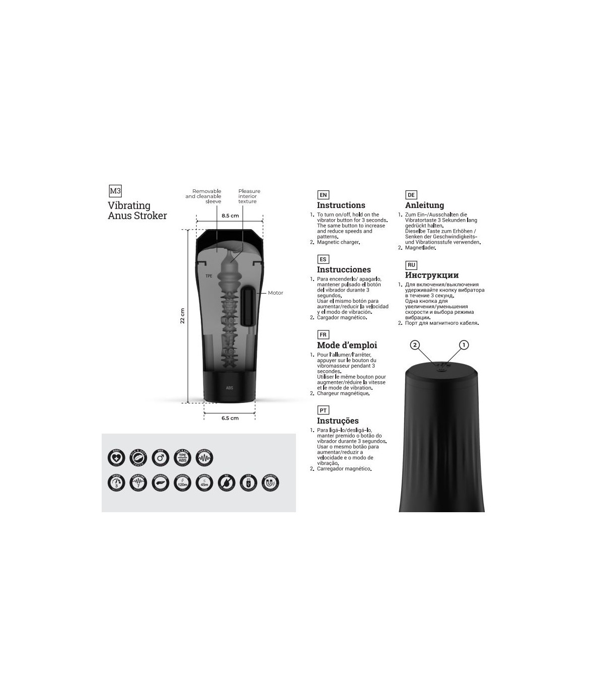 M2 ist ein realistischer Masturbator in Form eines Anus, der Vibrationen unterschiedlicher Intensität aufweist. Dank seiner Rillen auf der Innenseite sorgt er für zusätzliches Vergnügen, indem er eine sehr realistische Penetration simuliert.