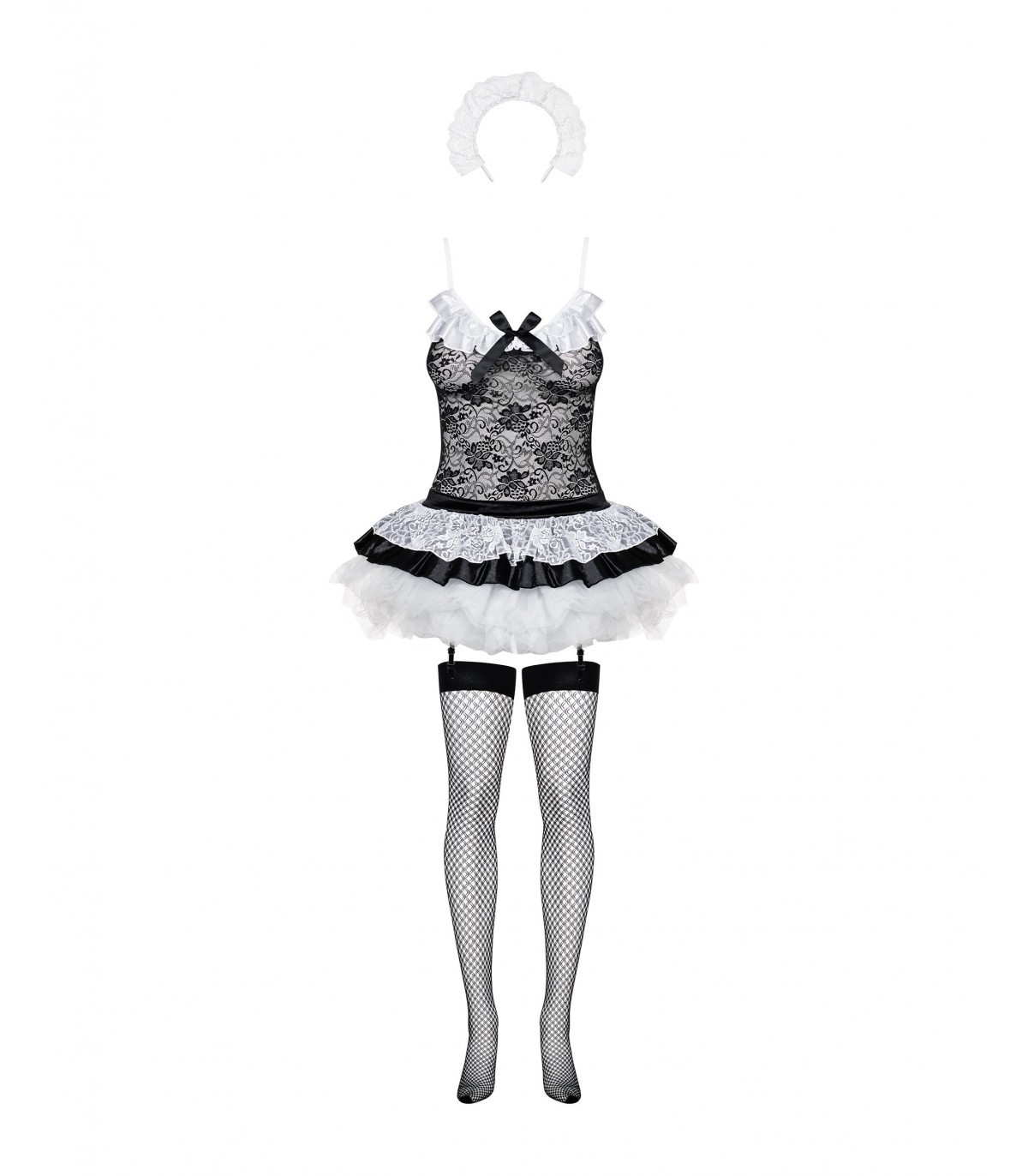 - komplett mit Strümpfen, Spitzenstring und Stirnband