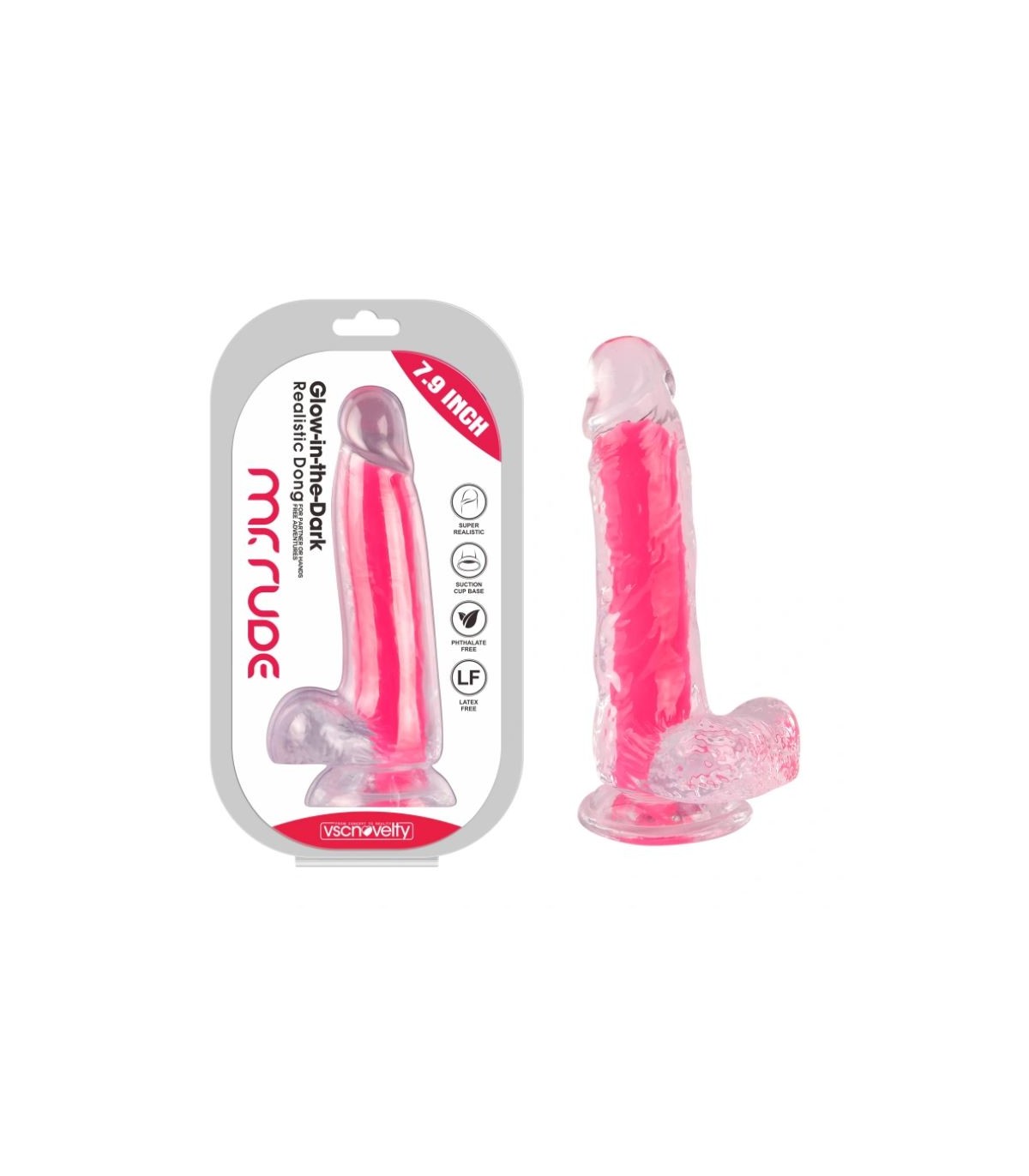 ROSA PHOSPHORESZIERENDER REALISTISCHER PENIS 20 CM