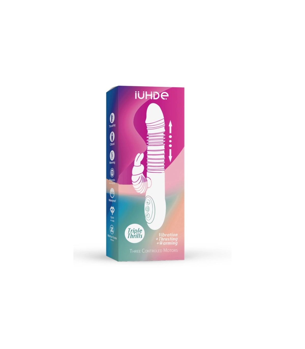 Vibrator mit Klitorisstimulator aus Silikon und wiederaufladbar per USB-Kabel.