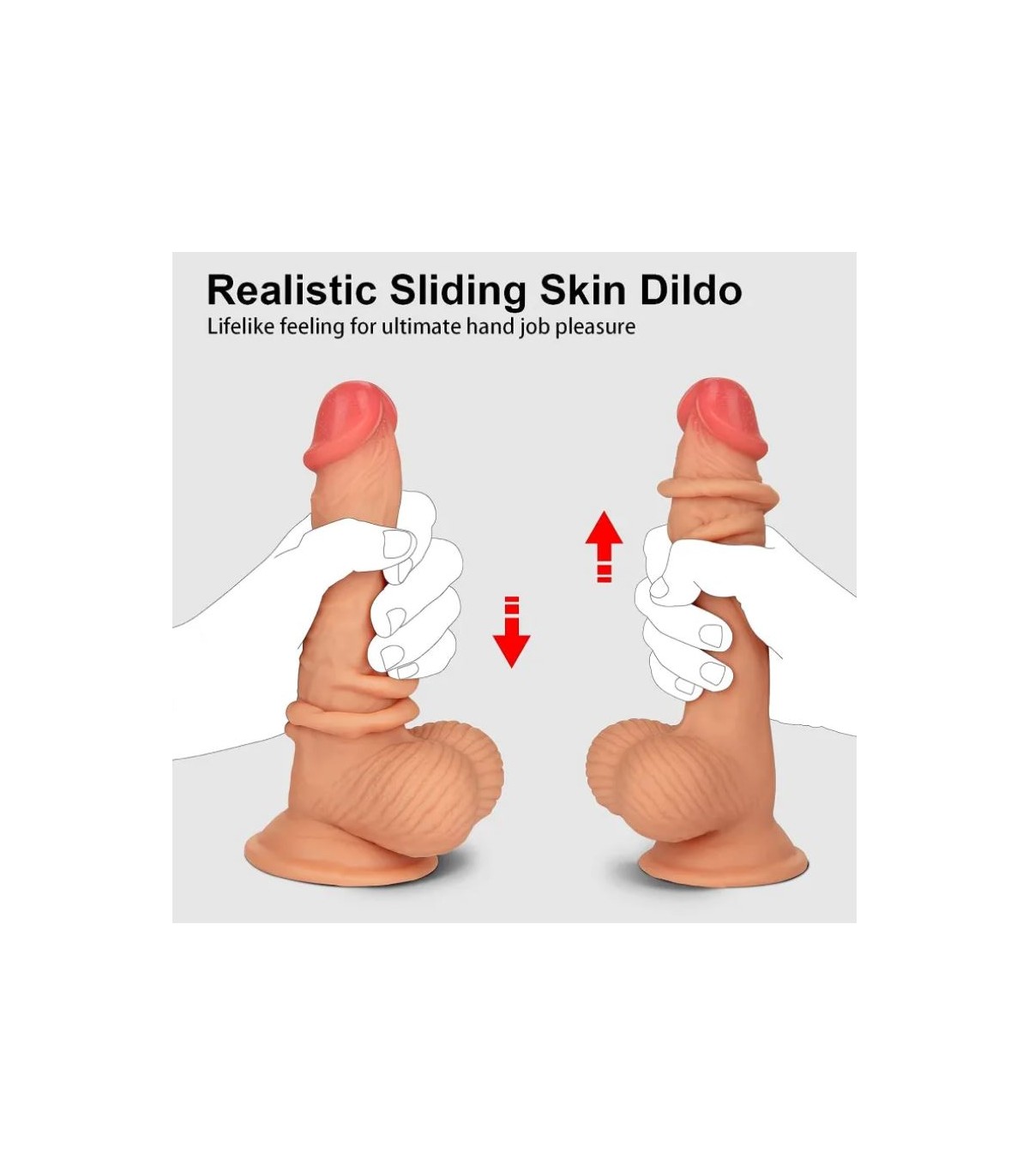 Handgefertigt und unglaublich realistisch, der strukturierte Schaft, der Kopf und die Hoden sehen genauso aus wie das Original, mit Adern und Falten genau dort, wo sie sein sollten. Aber das wirklich Spektakuläre an diesem Spielzeug ist das Flex Skin-Material, das sich beim Streicheln auf und ab bewegt.