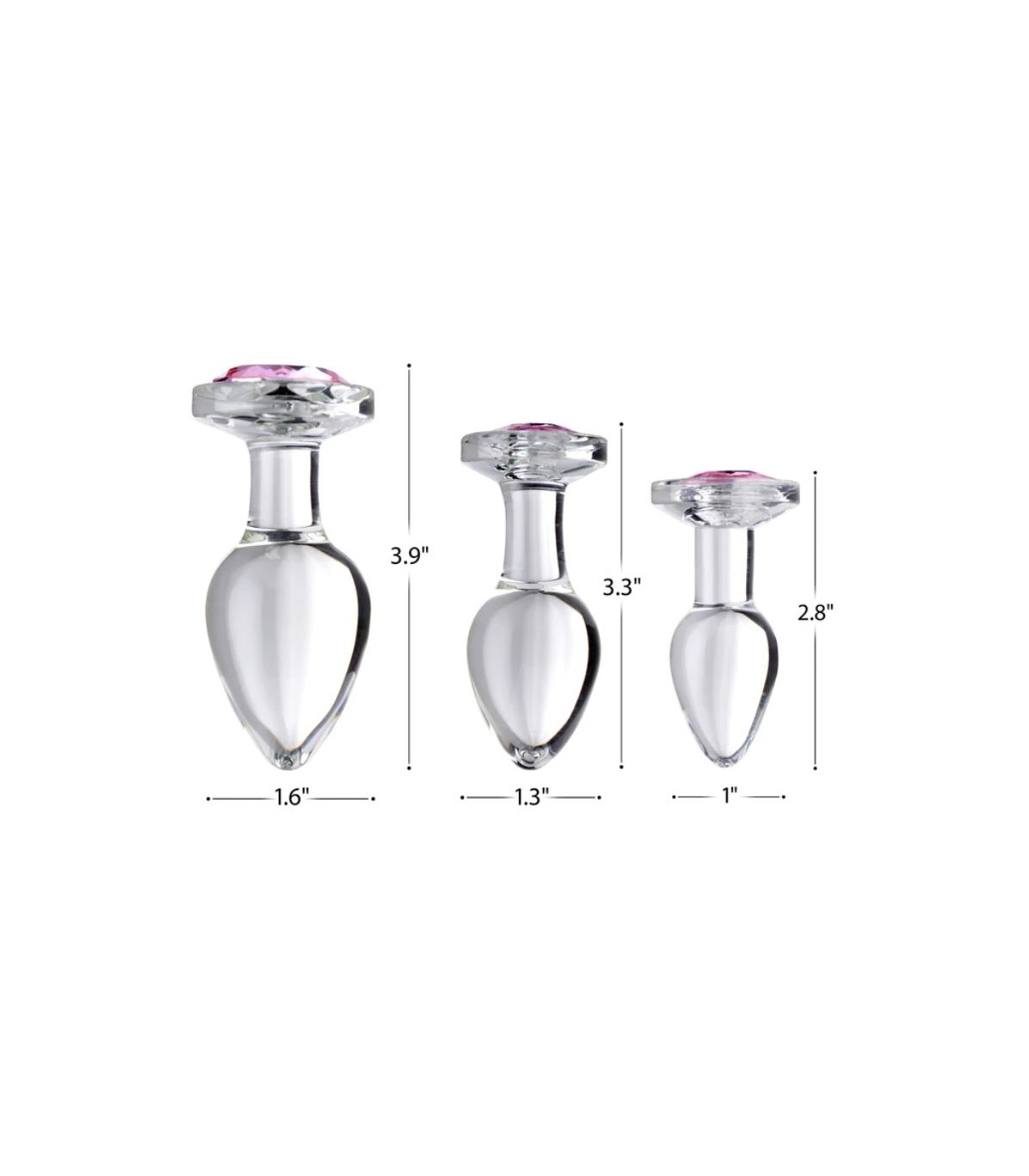 Schmücken Sie Ihren Hintern mit einem umwerfenden Juwel! Diese glasigen Analplugs von Booty Sparks sind kristallklar und superweich und bieten eine solide Textur speziell für Ihr Hintertürchen. Perfekt zum Aufwärmen Ihres Lochs für mehr Vergnügen oder als eigenständiges Analspielzeug – der starre Körper und die superweiche Oberfläche drücken fest gegen Ihre Wände und sorgen für ein unglaublich befriedigendes Drücken! Einfach einölen und einführen, damit der Hintern glänzt! Verschönern Sie Ihren Hintern mit einem glänzenden rosa Edelstein, um Ihren Liebhaber anzulocken und ihn auf härtere Spiele vorzubereiten. Das Glasmaterial ist von Natur aus hygienisch und körperverträglich, sodass Sie sorgenfrei spielen können. Diese Glasschmuckstücke sind geruchsabweisend und vor und nach dem Gebrauch leicht zu reinigen. Sie sind ein Grundbestandteil jeder Spielzeugsammlung. Perfekt für Temperaturspiele – erhitzen oder kühlen Sie diese Glasplugs für ein zusätzliches Maß an Vergnügen!