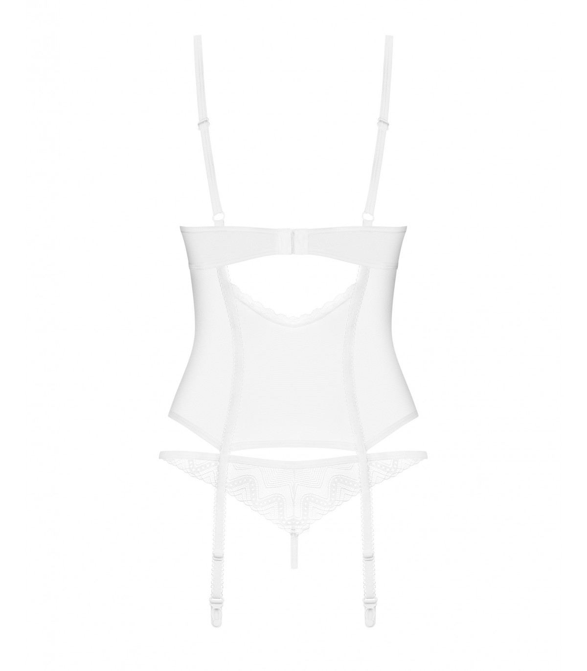 Dies ist ein Tor zu einem Reich sinnlicher Freuden! Treten Sie ein in eine Welt, in der sich durchsichtiges, dehnbares weißes Netz perfekt an Ihre Kurven anpasst und eine einzigartige Passform verspricht.