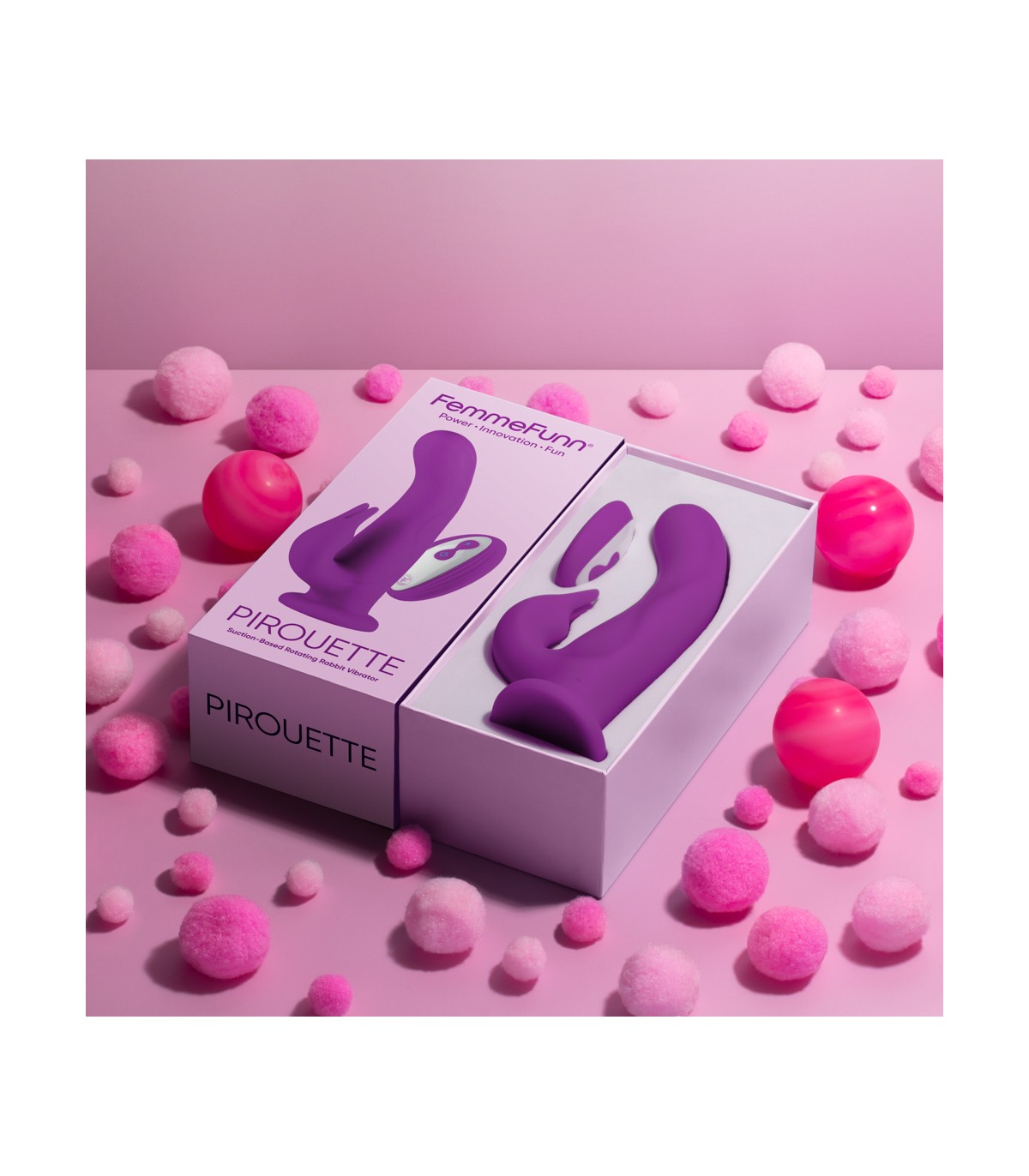 Pirouette verfügt über 8 leistungsstarke Rabbit-Vibrationsmodi und 360°-Rotationstechnologie in einem eleganten, wasserdichten Design aus hochwertigem Flüssigsilikon und ist mit einer Fernbedienung ausgestattet
