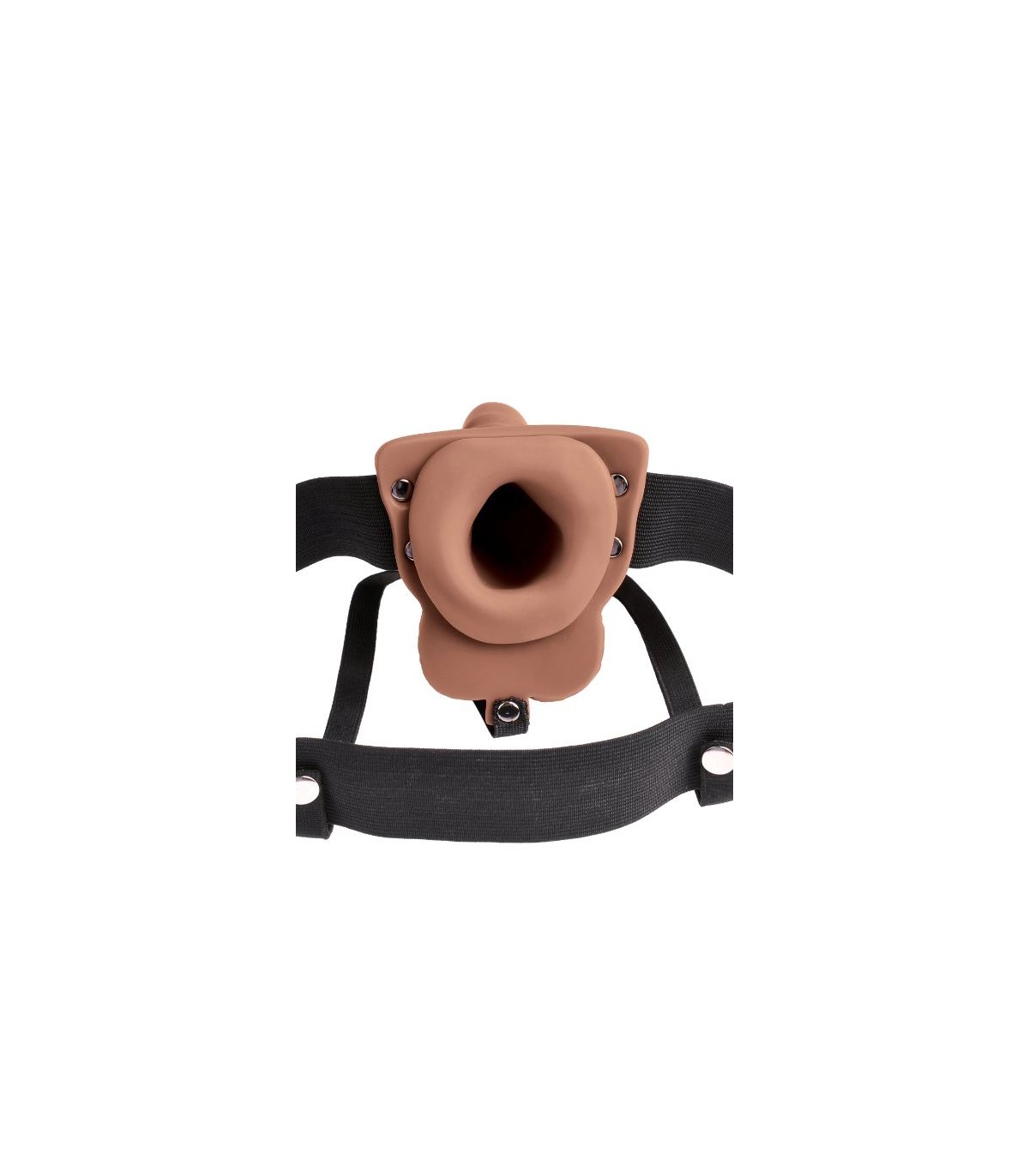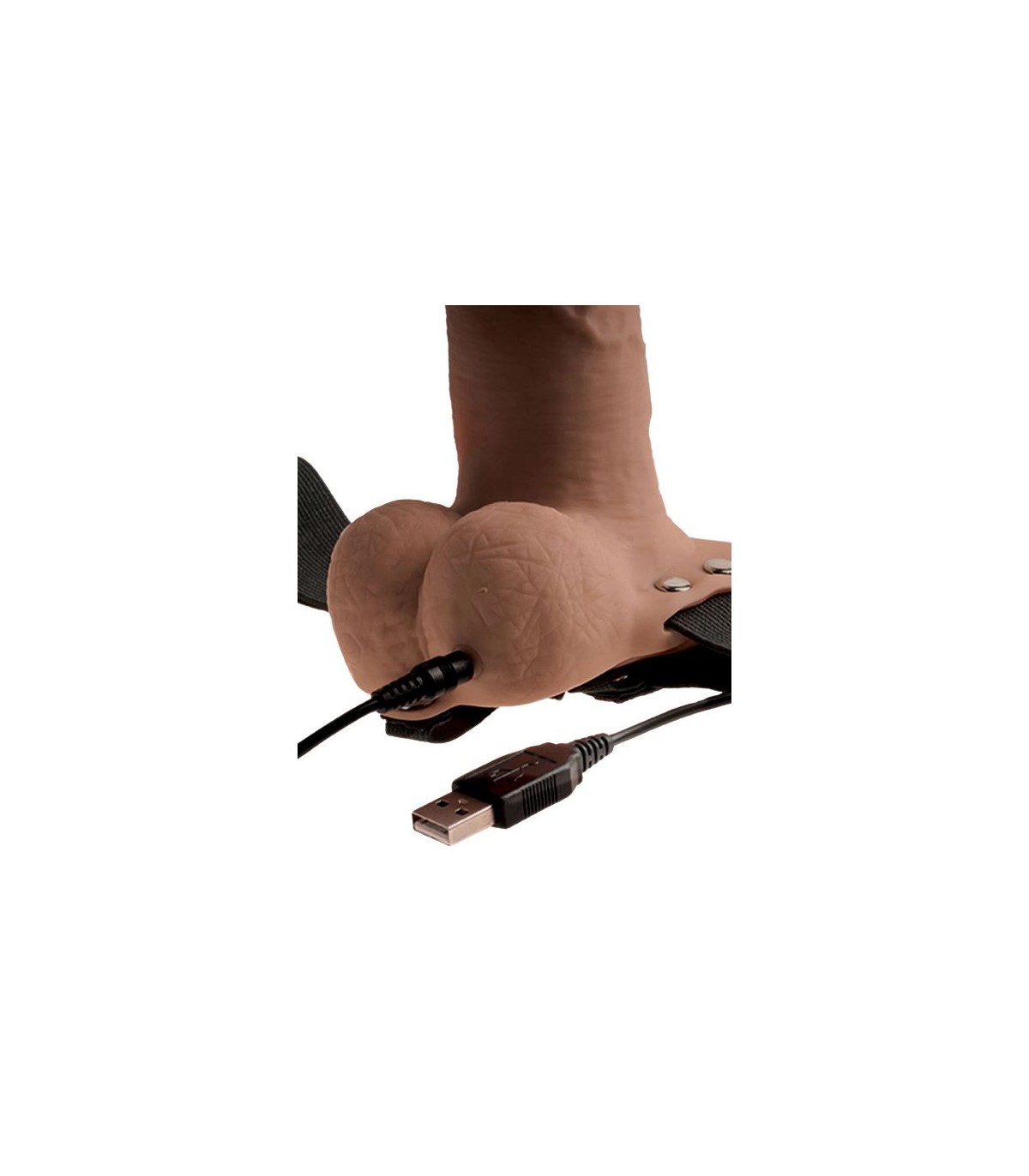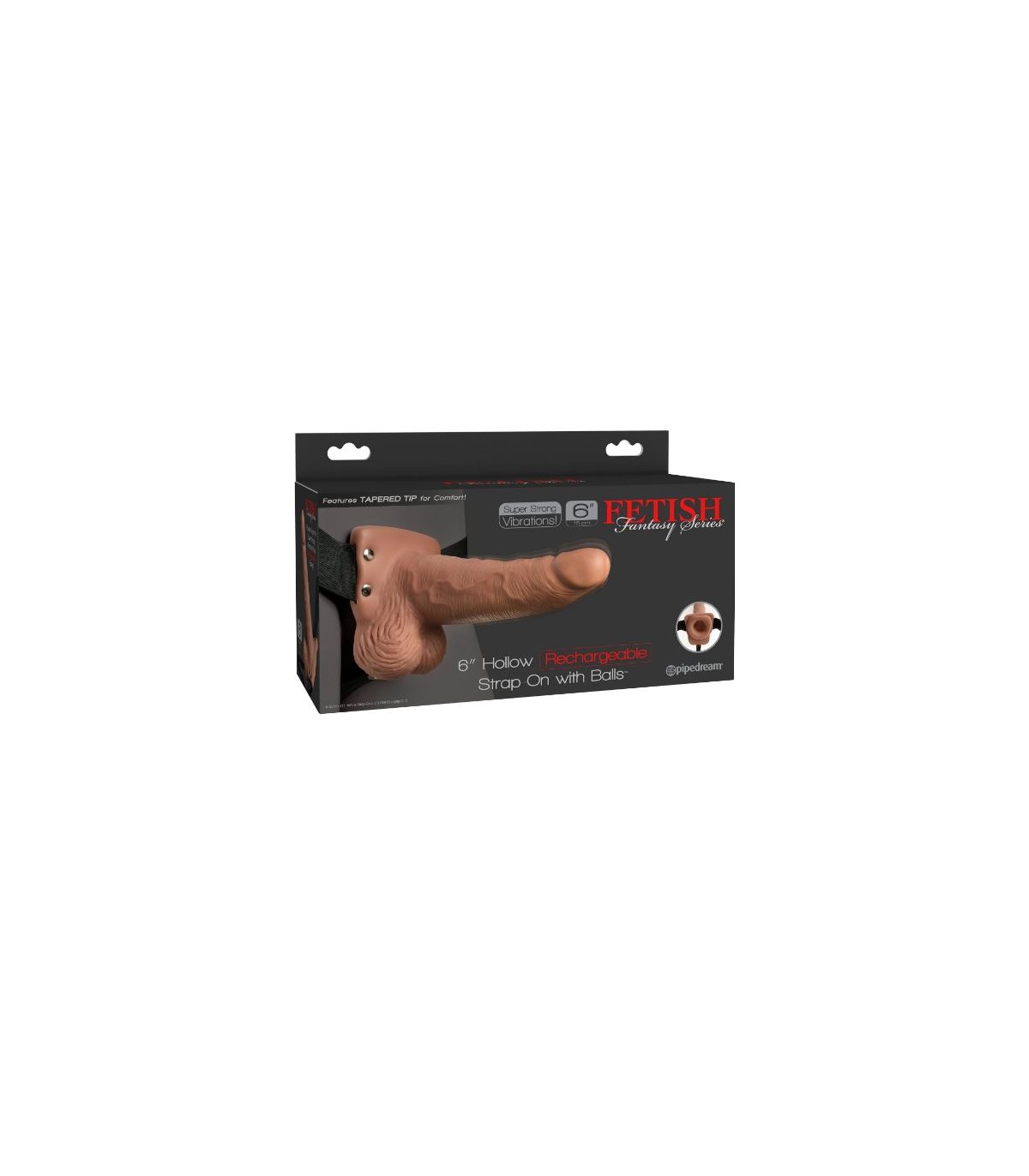 6" HOLLOW RECHARGEABLE STRAP-ON WITH BALLS TAN