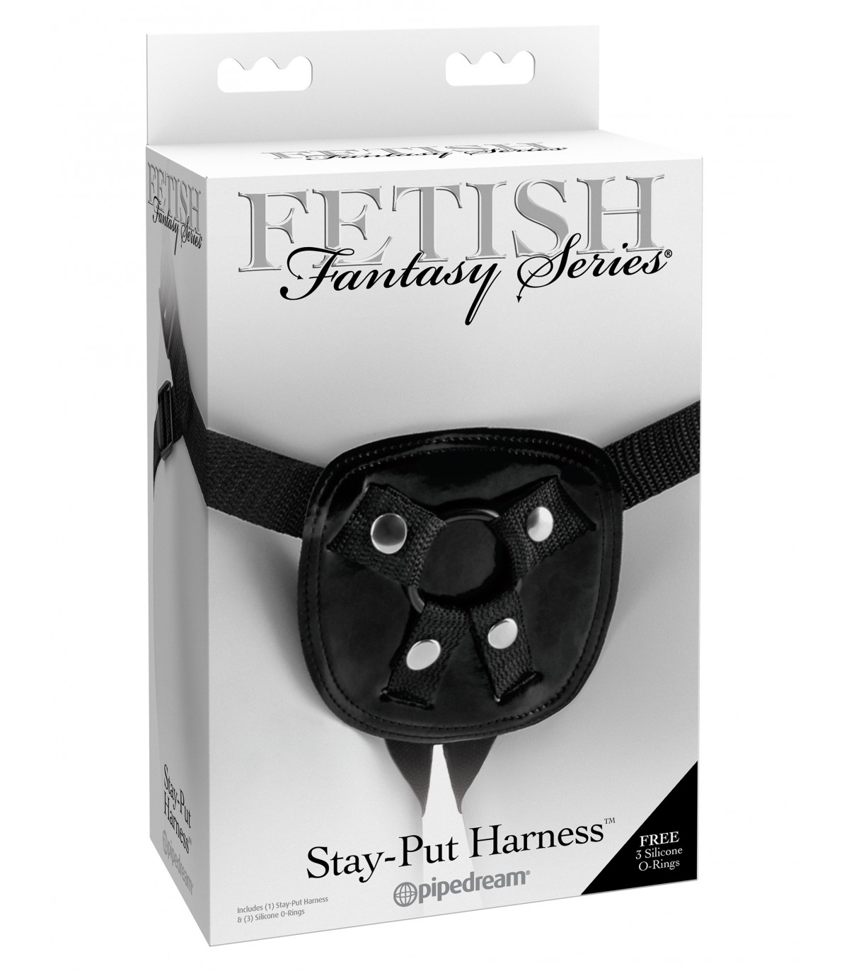 Die niedrige Passform ist sehr bequem, während die vier Metallverschlüsse den O-Ring sichern und alles an Ort und Stelle halten, auch wenn es heiß hergeht. Die drei mitgelieferten Silikon-O-Ringe ermöglichen den Austausch verschiedener Dildos mit einem Durchmesser von bis zu 5 cm.