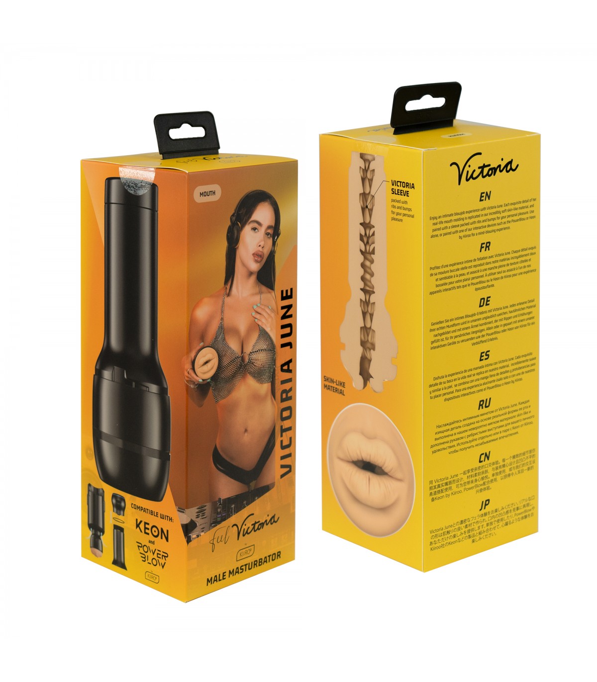 Der FeelVictoria Mouth Stroker wurde für die Verwendung mit Keon, dem Flaggschiff-Masturbator von Kiiroo, entwickelt und bringt Fans Victorias Blowjob näher als je zuvor.