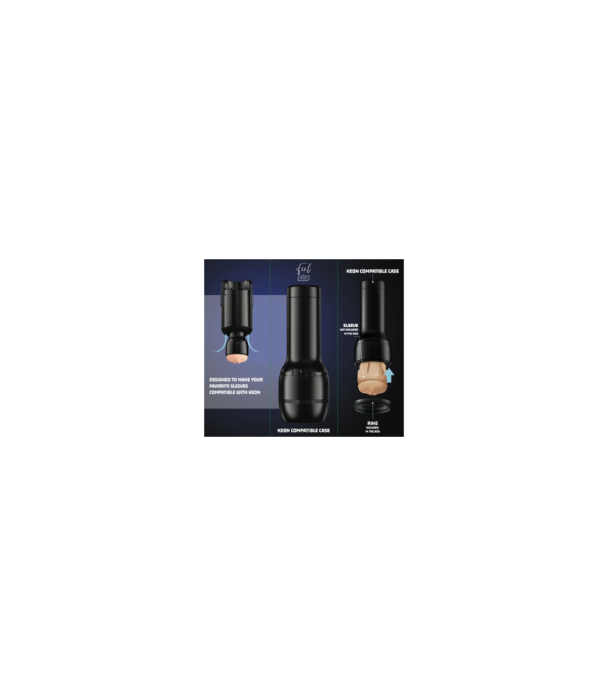 Die mit Keon kompatible Keon Feel Stroker-Hülle und der Ring wurden entwickelt, um Ihre Lieblingshüllen einiger der führenden Marken für Erwachsene mit Keon von Kiiroo kompatibel zu machen. Der in der Box enthaltene Ring hält die Ärmel etwas höher oder länger als der Feel Stroker.