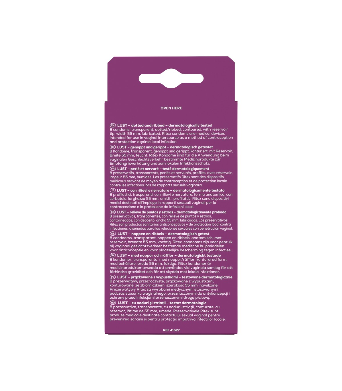 Ritex LUST Kondome sind genoppt und gerippt und verfügen über die Ritex Perfect Form® Form für besonders intensive Empfindungen.