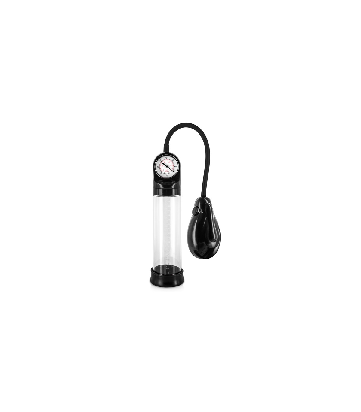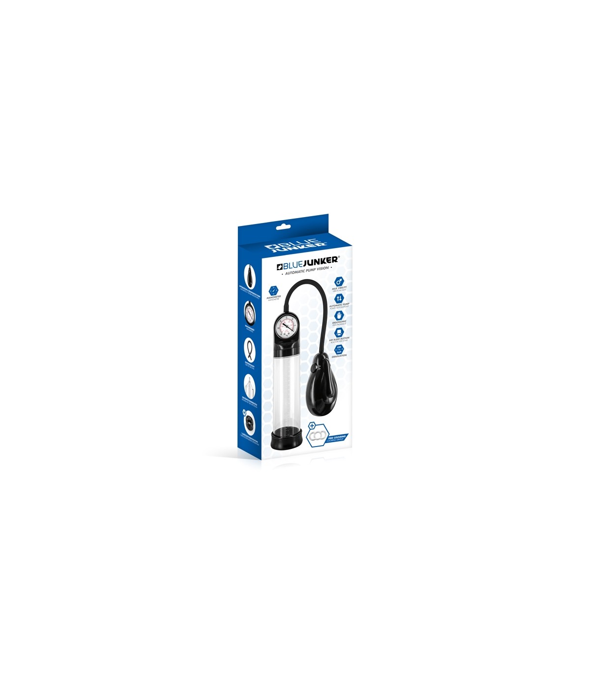 Diese Pumpe enthält einen Ring, um einen größeren Druck auf Penis und Hoden auszuüben.