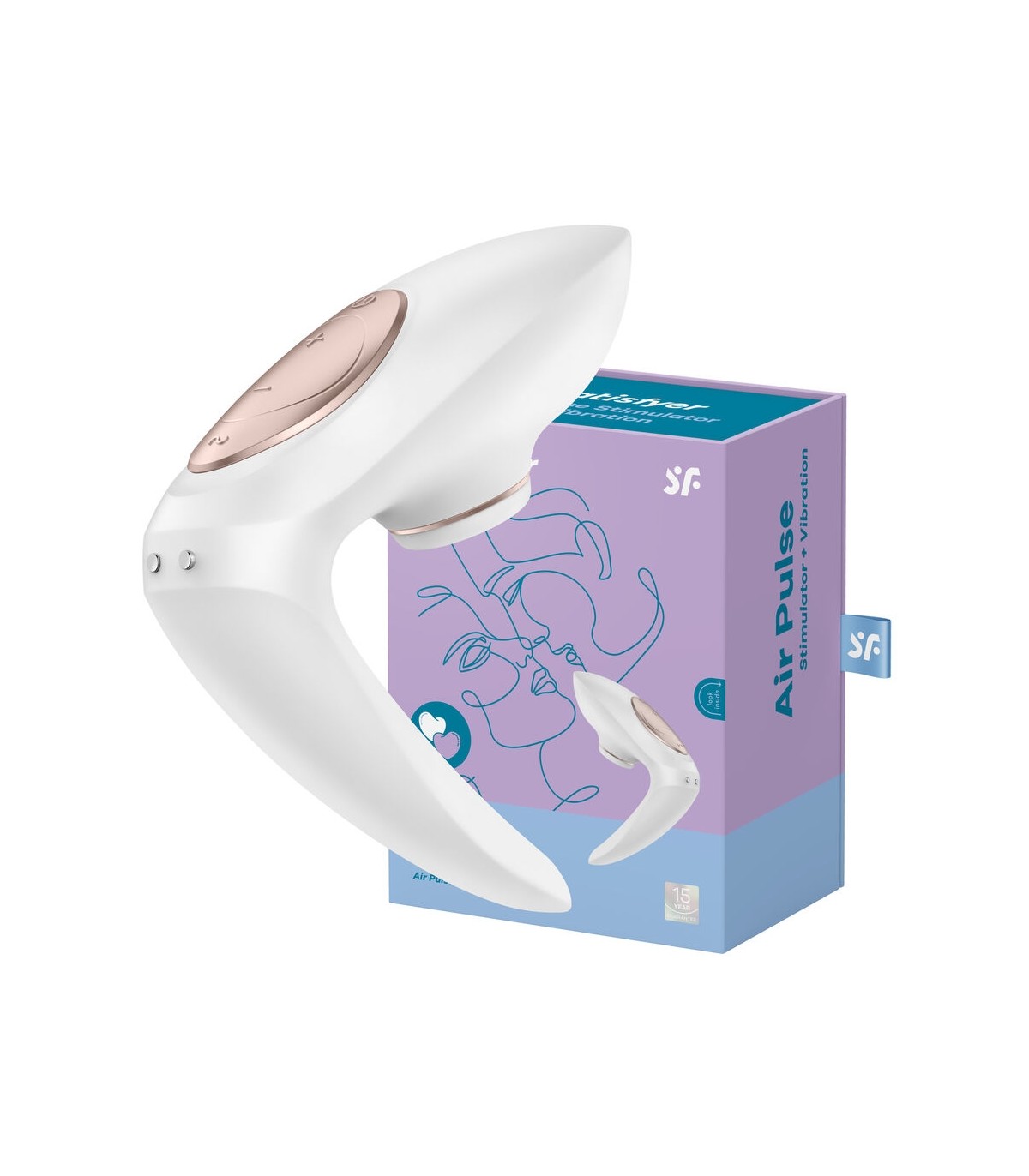 Paarvibrator aus weichem Silikon mit Motor in der Vagina und Wellensauger an der Klitoris. Dank seiner zwei über USB wiederaufladbaren Motoren verfügt er über eine große Leistung.