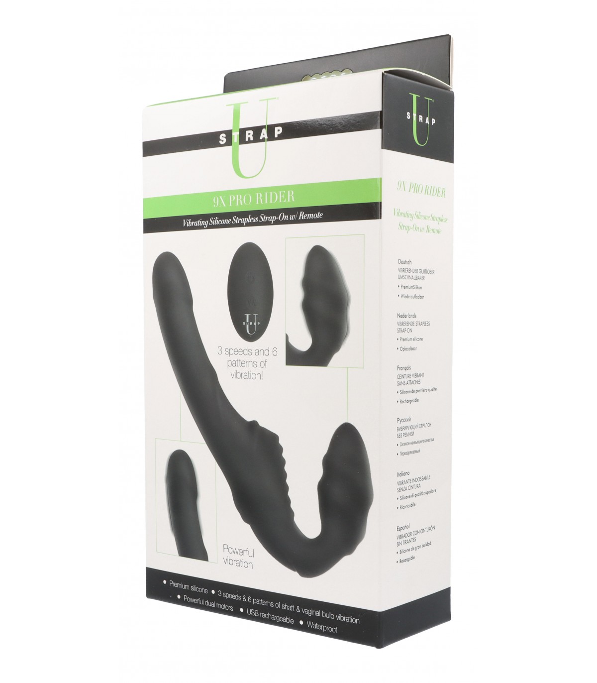 Harness mit doppelter Stimulation mit Steuerung aus sehr weichem schwarzem Silikon.