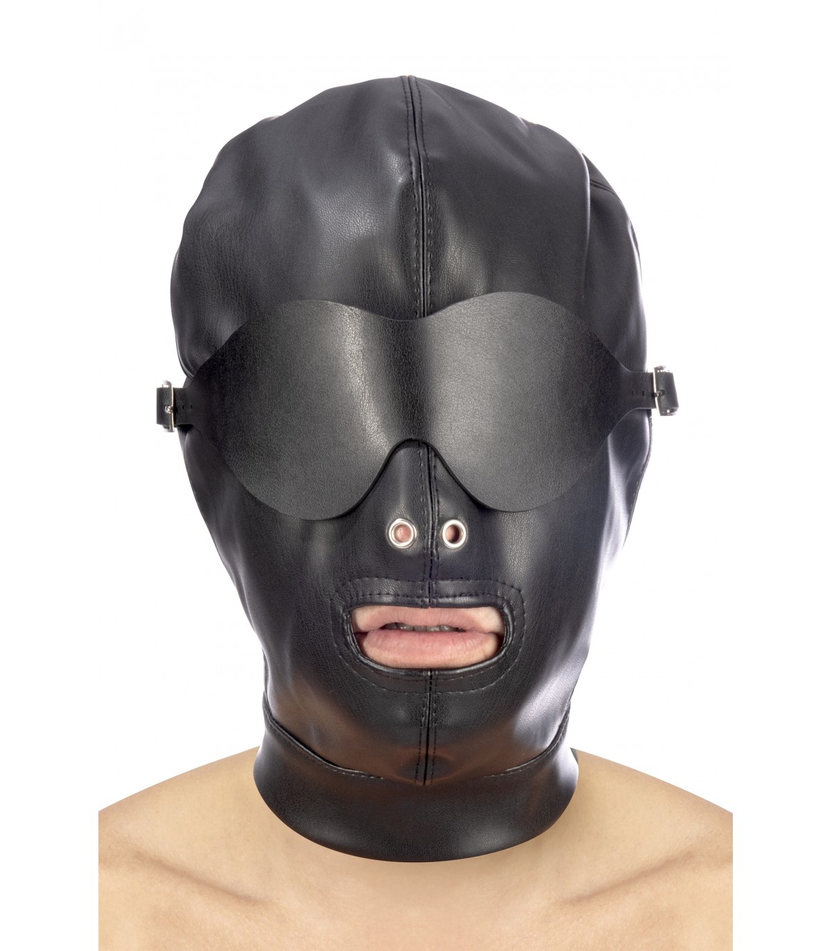 VERSTELLBARE SCHWARZE KAPUZE MIT MUNDÖFFNUNG