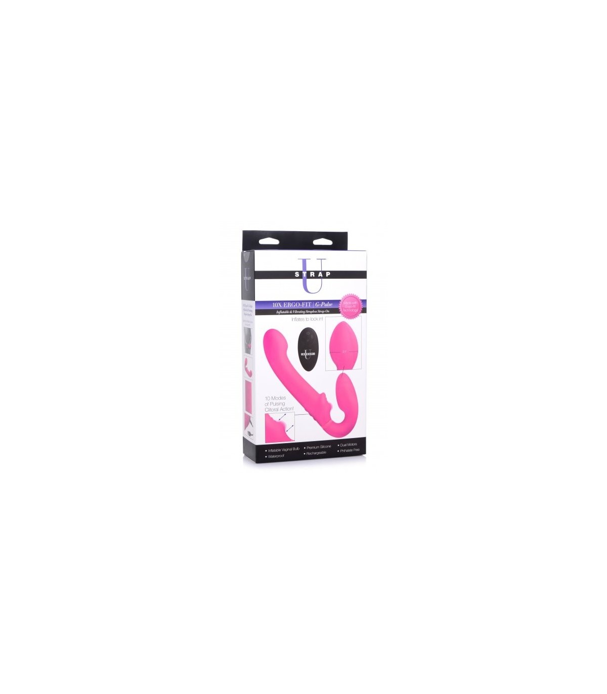 DOPPELTER AUFBLASBARER GURT MIT FERNBEDIENUNG UND ROSA USB-KLITORIS-DRUCKKNOPF