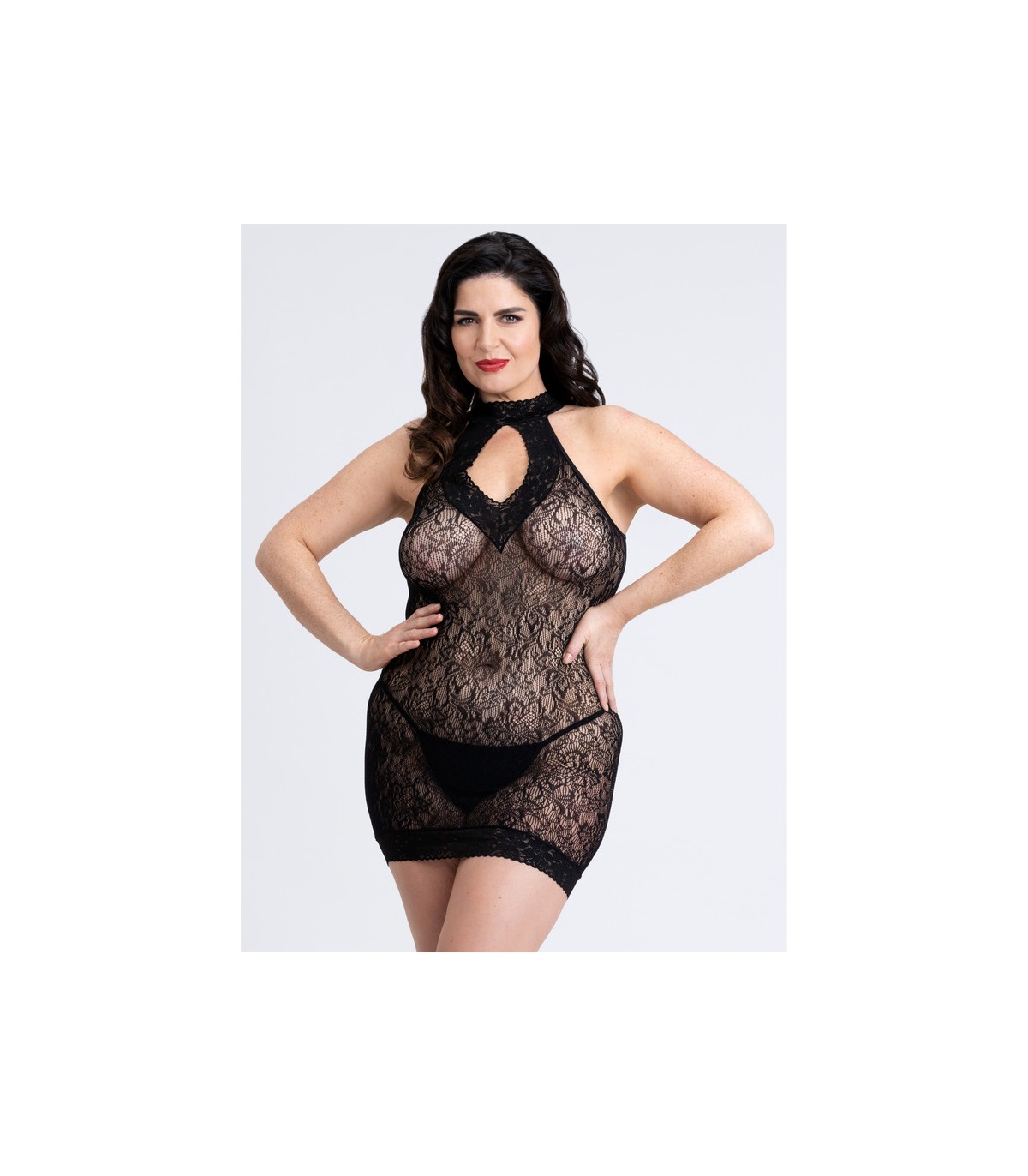 Eine kunstvolle und zarte florale Spitze, sehr feminin, enthüllt die Haut und bringt Ihre Figur mit einem unwiderstehlichen Effekt zur Geltung. Von hinten ermutigt eine provokative Eröffnung zu einer guten Spanking-Session.