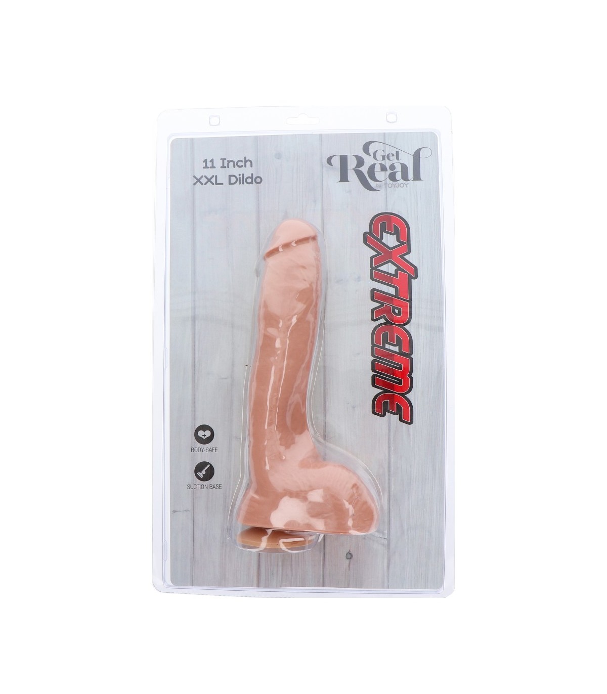 Der Extreme XXL Dildo 11 Zoll ist ein realistischer Dildo in Premiumqualität aus der Get Real by TOYJOY-Kollektion, der entwickelt wurde, um alle Ihre intimen Hotspots zu erreichen. Dieser vergnügliche Dildo hat einen hellen Hautton und eine natürliche Silhouette mit einer Saugnapfbasis – für ein aufregendes freihändiges Erlebnis. Das Design verfügt über sorgfältig gearbeitete Details wie Adern und Kugeln, um seine natürliche Ausstrahlung zu unterstreichen. Aus phthalatfreiem PVC gefertigt und zeitgemäß verpackt, ist der Extreme XXL Dildo 11 Inch ein Must-Have für alle Extrem-Liebhaber.