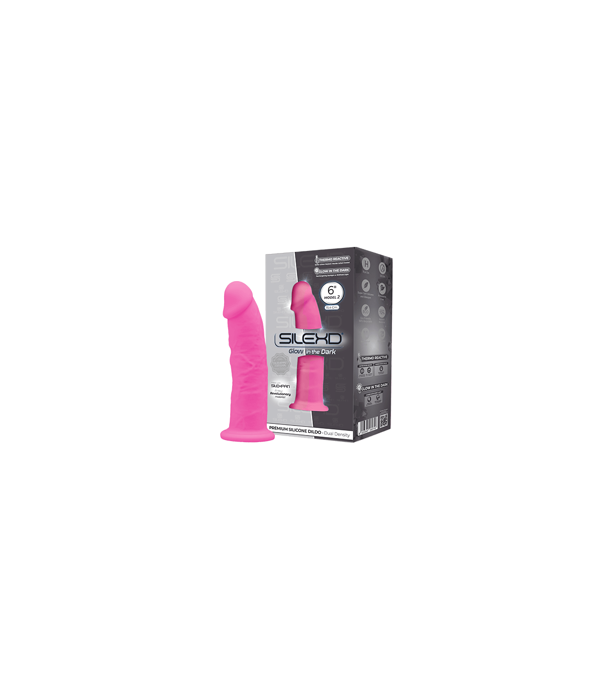 SILEXD DILDO SILICONA MODEL 2 6" ROSA FOSFORESCENTE
