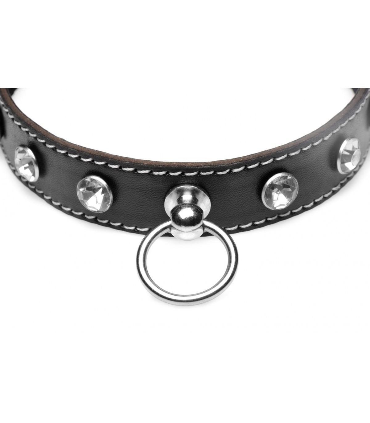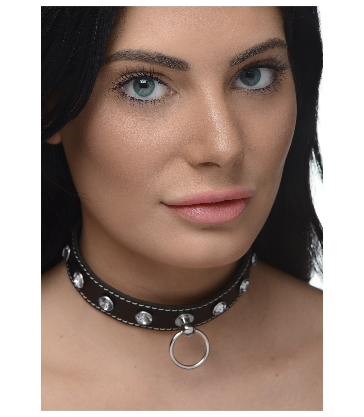 ¡Atrae la atención que te mereces con esta gargantilla de pedrería clara! ¡Los deslumbrantes diamantes de imitación captan la luz mientras llamas la atención de tu pareja con los tonos claros! ¡Úselo como un accesorio o como una declaración! Este collar sumiso tiene una junta tórica sin níquel unida en el centro para que usted o su pareja puedan colocar una correa; ¡déjalos caminar mientras te pavoneas con orgullo, o déjalos tirar de la junta tórica mientras te abrazan, besan o te tiran hacia abajo para hacer actos tortuosos y traviesos!