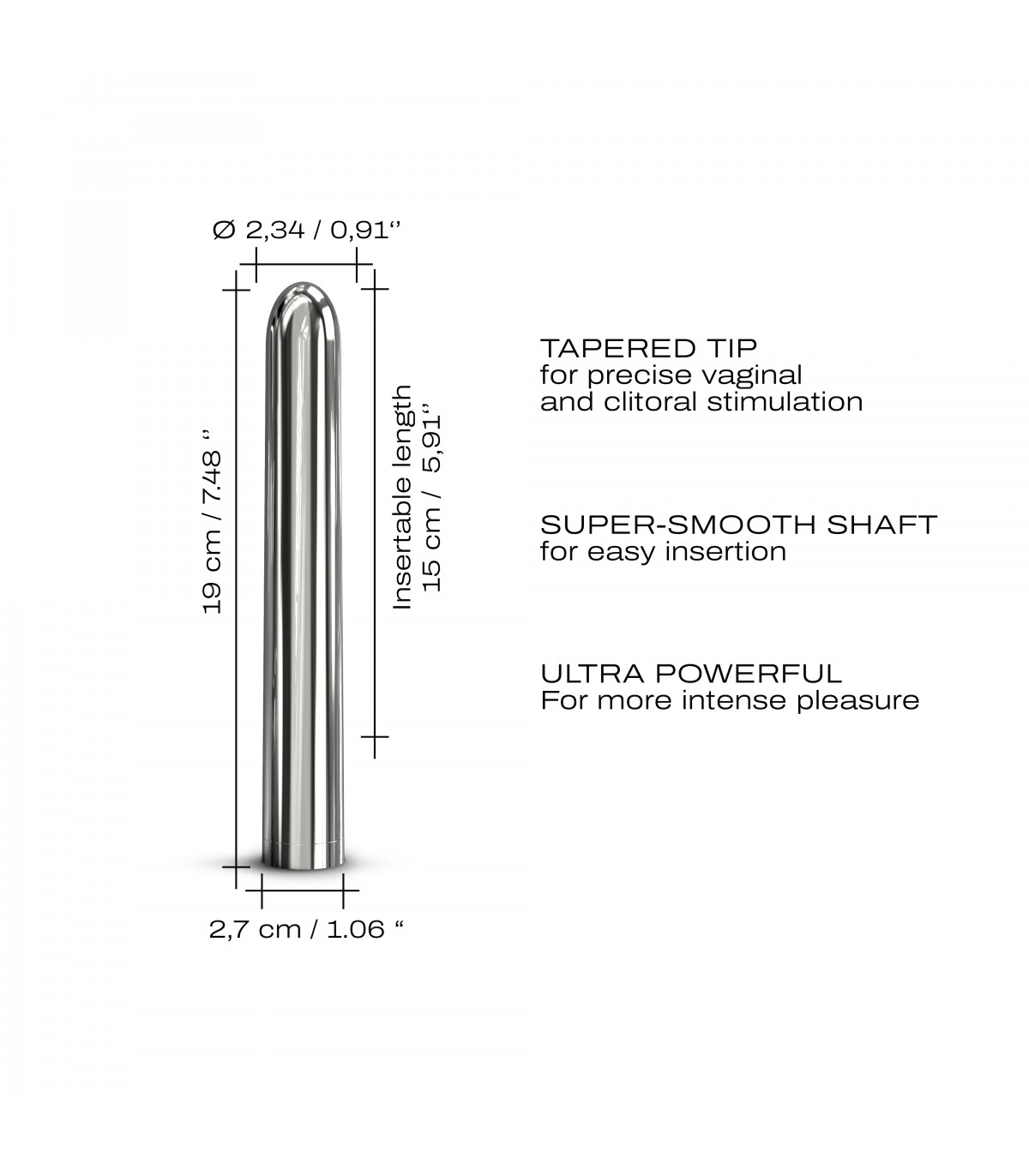 Vibrador recargable muy potente con diferentes velocidades e intensidades.