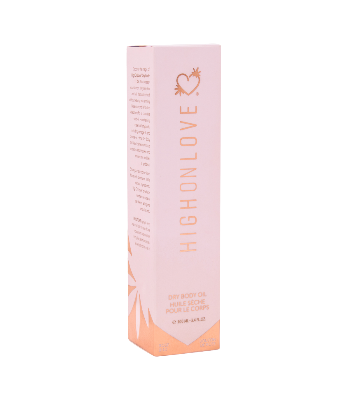 Descubra la magia del aceite corporal seco HighOnLove®, con una nutrición no grasosa que se absorbe rápidamente, para todo el resplandor y sin brillo no deseado.