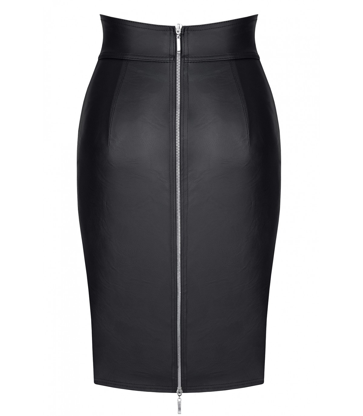 Impresionante vestido de tirantes con cremalleras muy ajustado en caderas en estilo piel realizado en ecopiel. Cuenta con una cremallera en la parte de la falda y otra en el pecho.