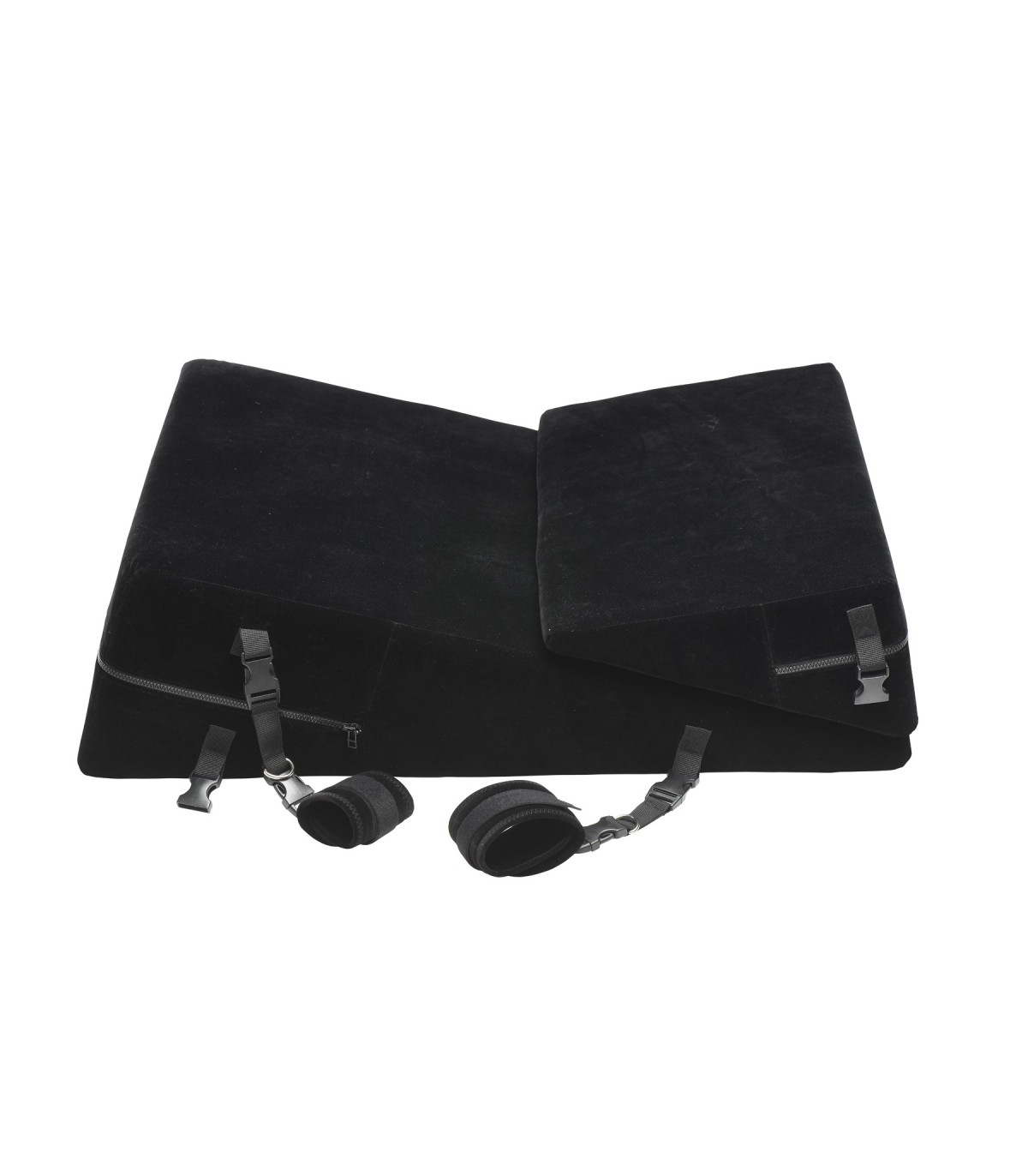 ¡Reinventa el sexo con este juego de almohadas tipo cuña bondage! Ahora puedes acceder a posiciones que antes no podías alcanzar con estas cuñas suaves, cómodas y aterciopeladas, hechas de espuma de alta densidad. ¡Alcanza nuevas alturas de mayor placer y disfruta encontrando la posición perfecta y manteniendo a tu pareja allí con los clips incorporados a los que se sujetan las muñequeras y tobillos a juego! ¡La suave funda exterior aterciopelada y la funda interior resistente al agua también se pueden lavar a máquina para que puedas jugar duro, mojarte, enjuagar y repetir!