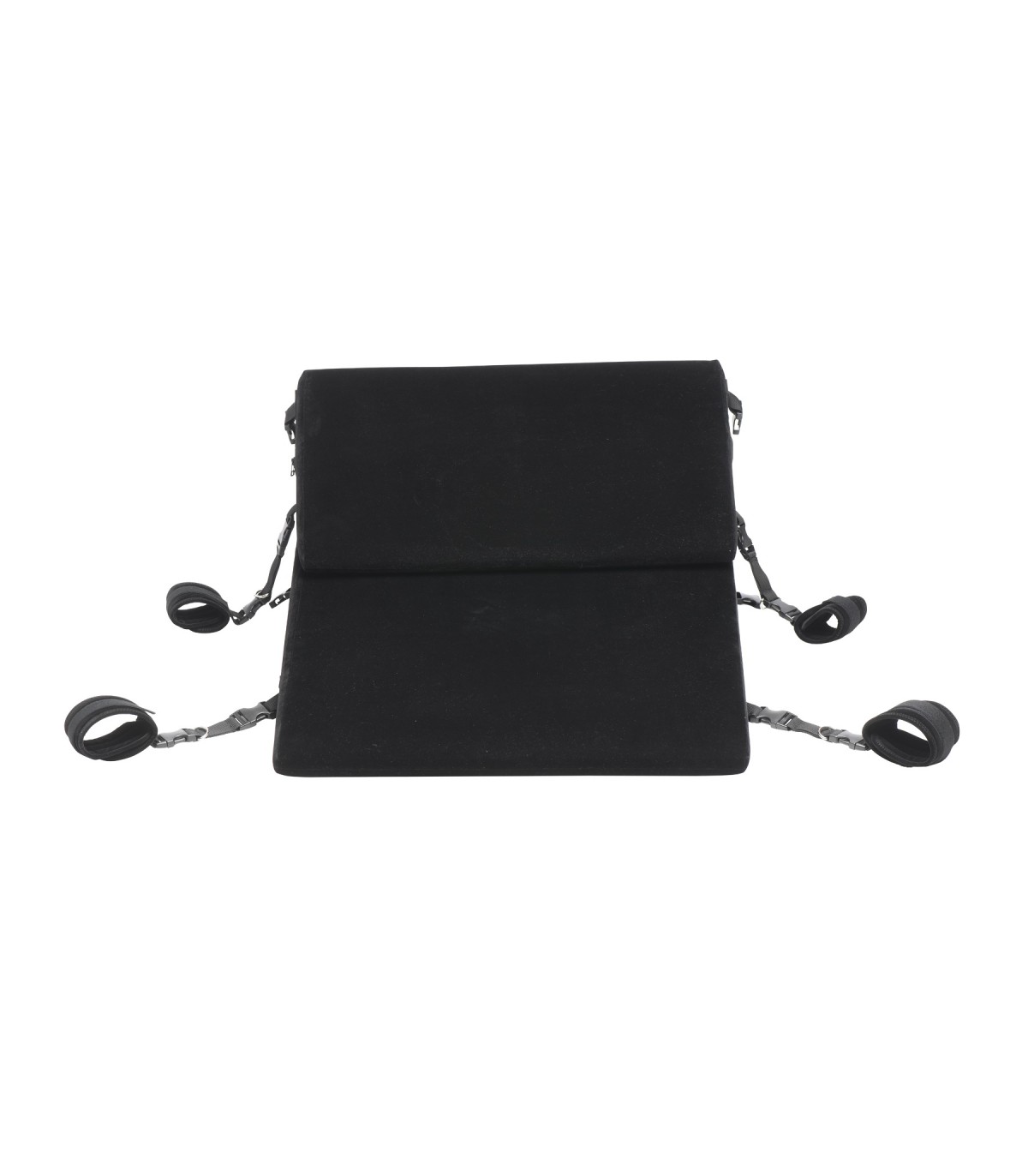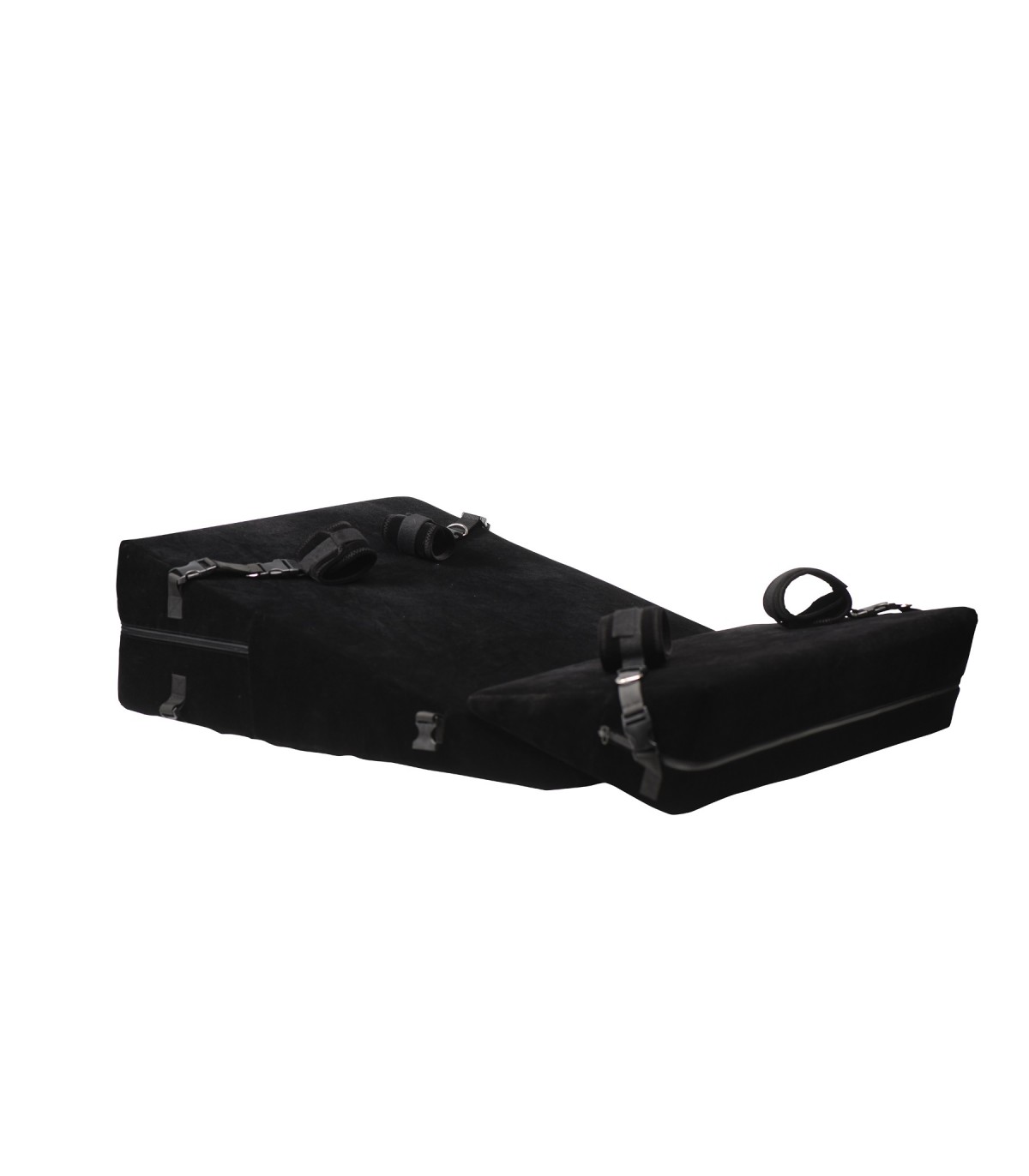Este juego de almohadas bondage incluye 2 muñequeras, 2 tobilleras, 4 conectores con anillos en D y 2 conectores de sujeción. También hay clips incorporados para sujeciones u otros accesorios. Coloque las muñecas y los tobillos de su amante en la cuña de la almohada. Cuando se tumban o se apoyan en la cuña, su propio peso corporal se convierte en el ancla que los mantiene atados. Levanta sus caderas para acceder fácilmente a su punto G o P, gíralos y juega con ellos en posición de perrito, ¡o apoya tus propias rodillas mientras te arrodillas con ellos! El tacto aterciopelado de la suave cubierta exterior añade sensualidad a tu sesión kinyk. ¡Las cuñas también son livianas para que puedas viajar fácilmente con ellas para pasar la noche y fiestas!