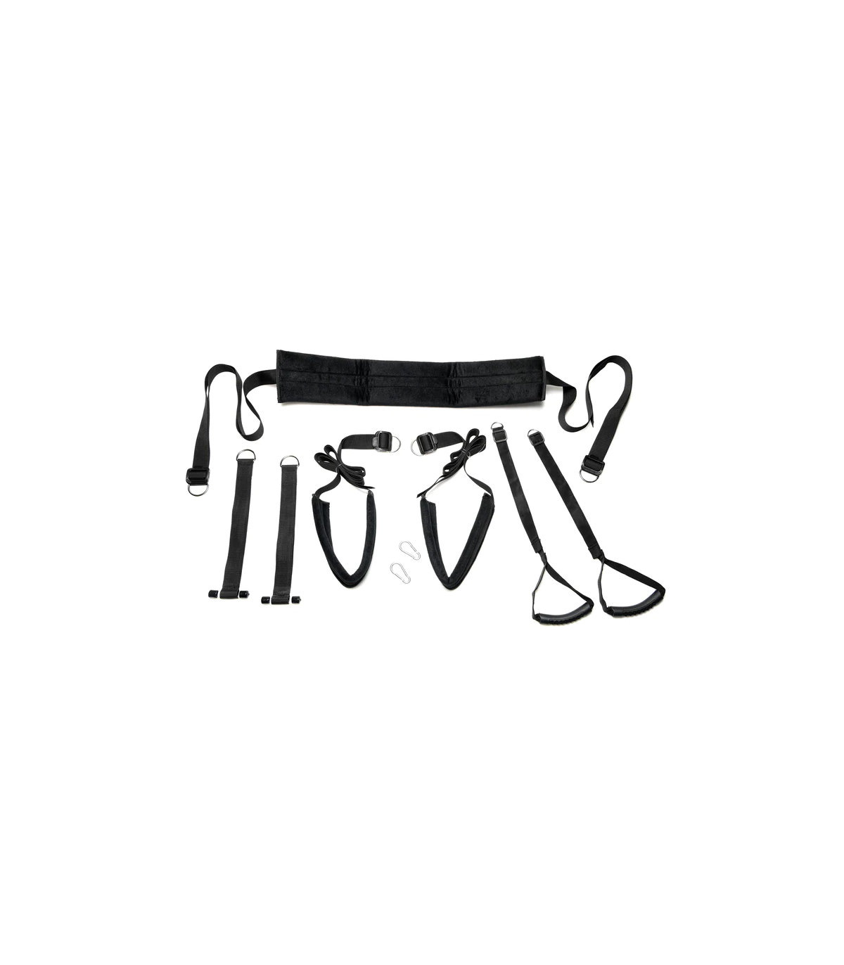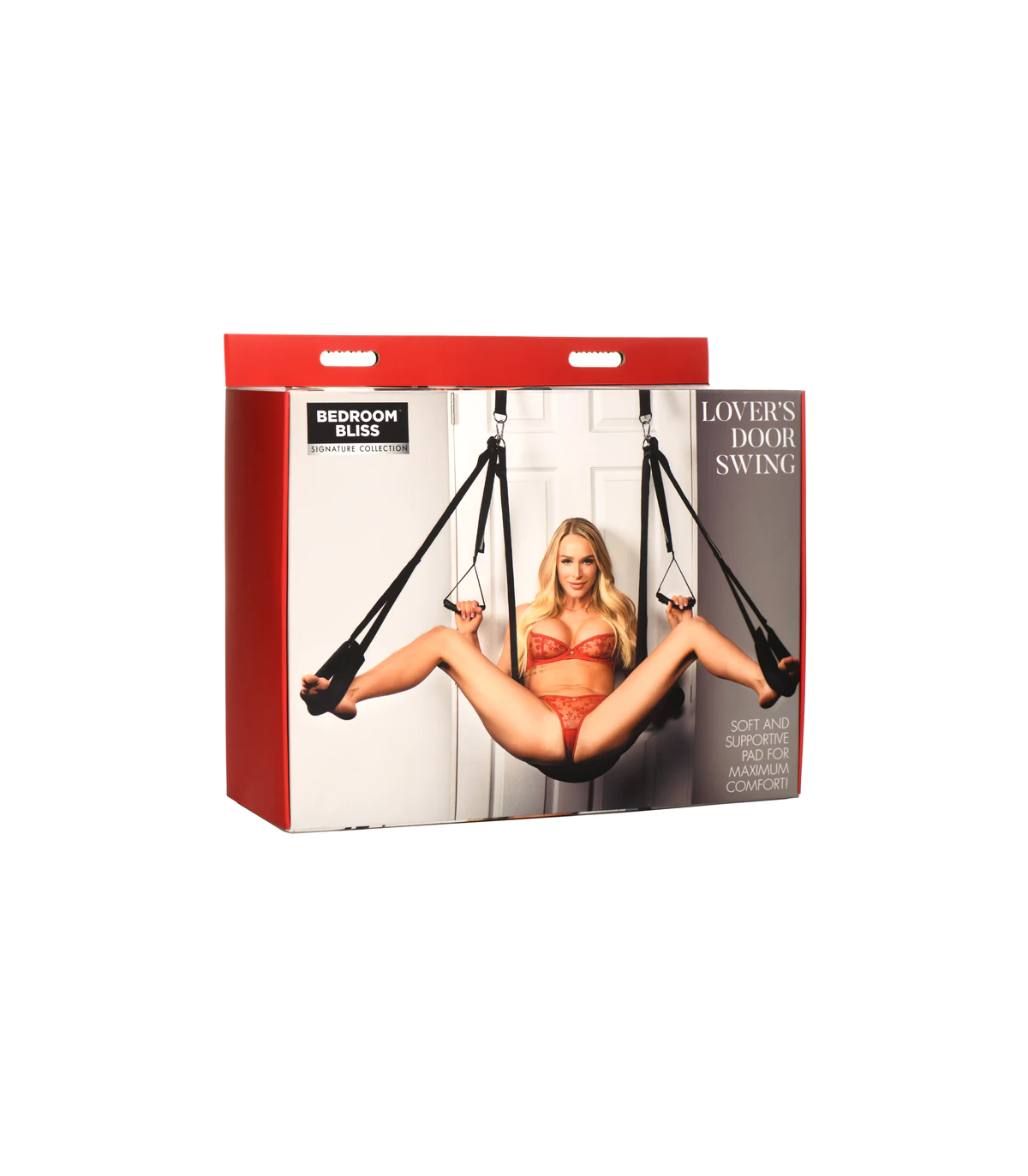Eleva tu placer con este Leber's Door Swing. Este cabellón sexual se rompa sobre una puerta cerrada de correas de nylon y se mantiene en su lugar a través de los cilindros de plástico ABS que protegen la puerta de rasgar y rascar. El nylon fuerte y duradero está acolchado con cojines de poliéster que sostienen los muslos y el fondo. Dos mangos cuelgan del marco de la puerta también para que puedas levantarte para ajustar tu posición y sentirte más seguro. El colmillo puede soportar hasta 300 libras. Las almohadillas de asiento, las almohadillas para las piernas y los rasgubros de la mano son todos ajustables. Las correas son fáciles de enganchar sobre una puerta o clip al soporte de oscilación sexual. Manténgase limpio según sea necesario o lave a máquina las correas y almohadillas. Todos los materiales están libres de ftalatos y sin níquel.