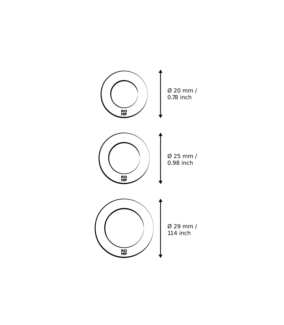 - Medidas:  20 mm, 25 mm y 29 mm.