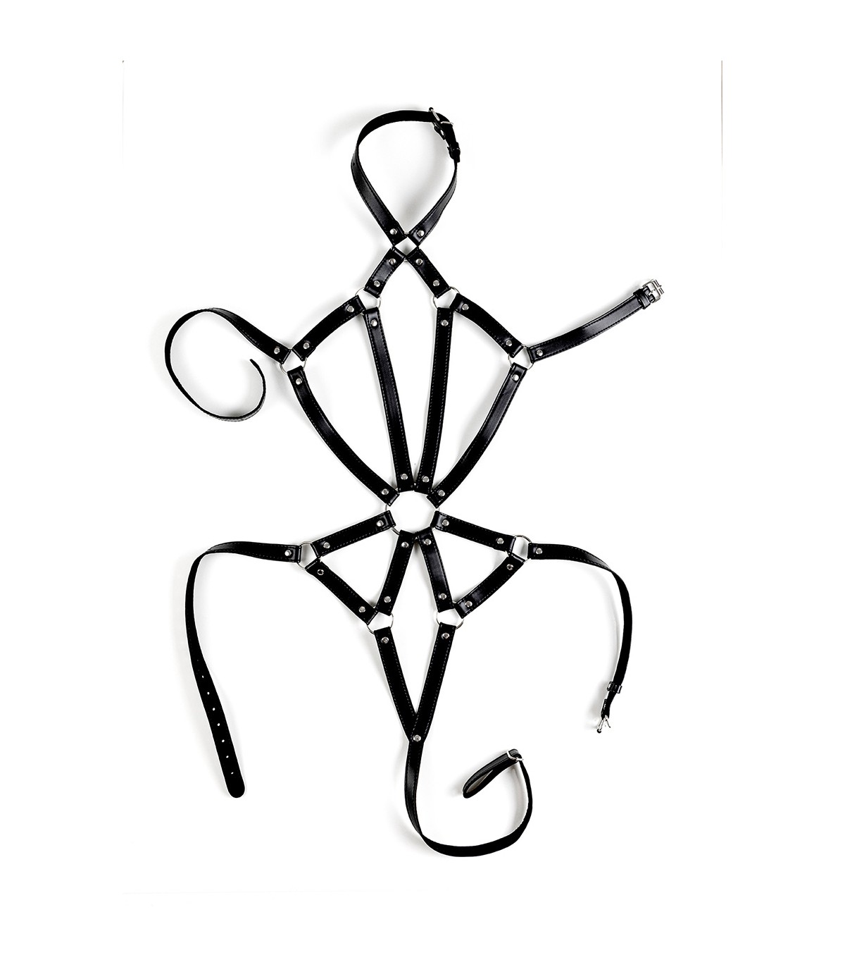 Arnés corporal de mujer completamente ajustable realizado en cuero vegano.