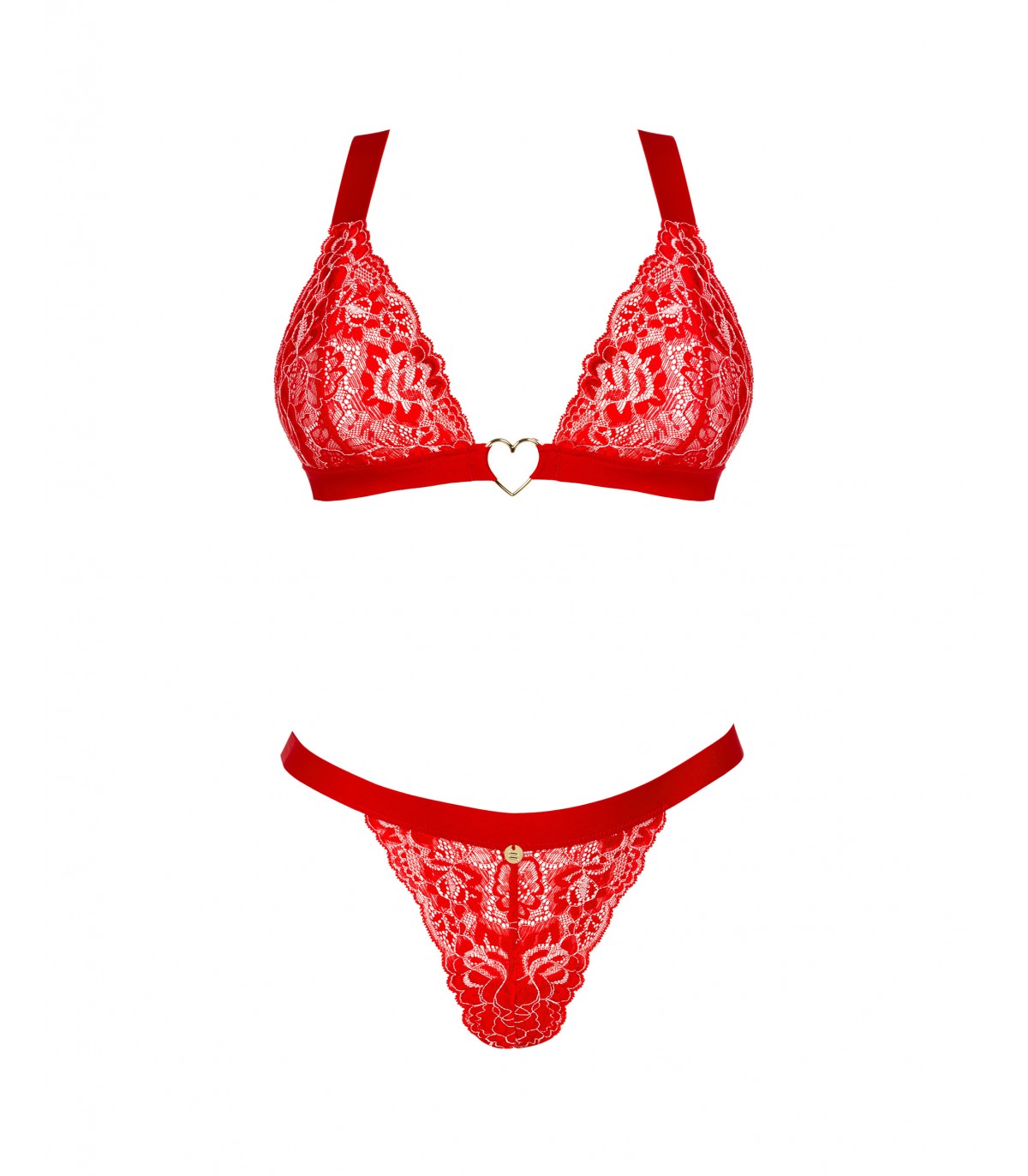 Conjunto de dos piezas formado por sujetador y tanga en color rojo para desatar toda tu pasión.