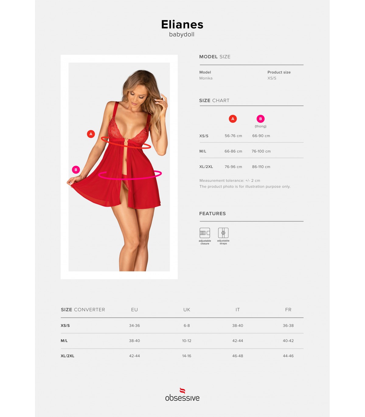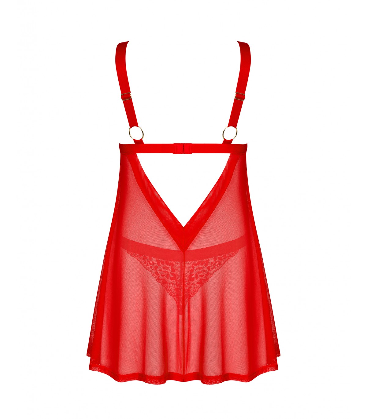 Bonito babydoll con transparencias en el pecho diseñado en color rojo pasión.