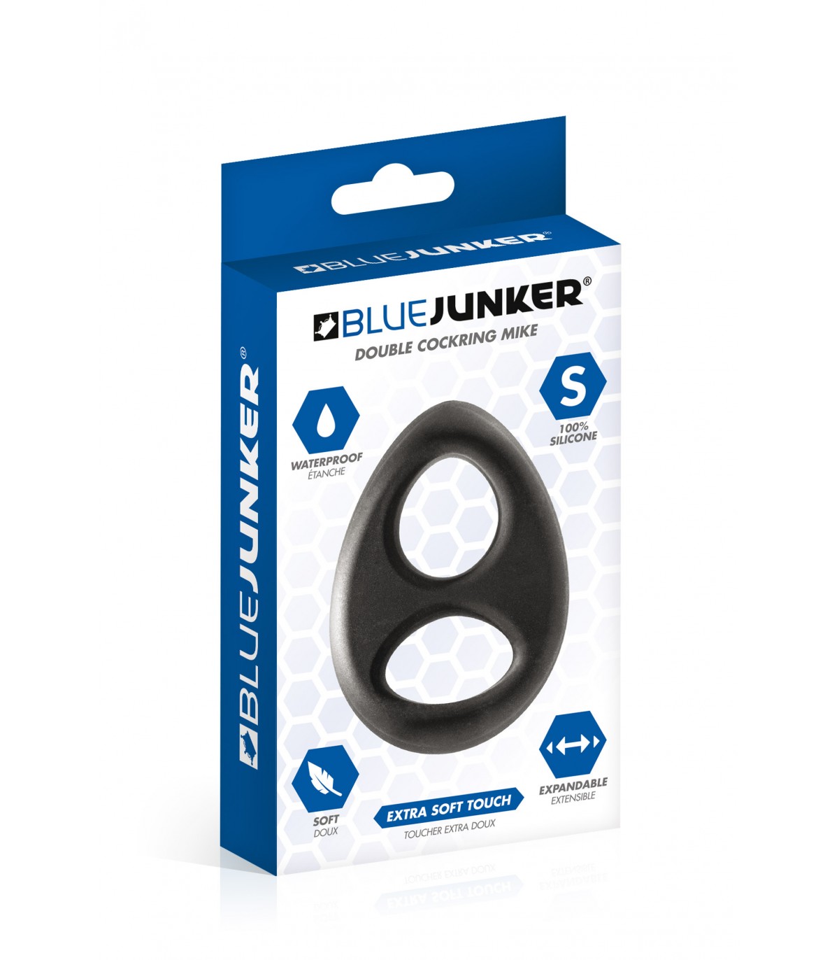 Blue Junker, te presenta este original anillo doble para el pene con forma ovalada.