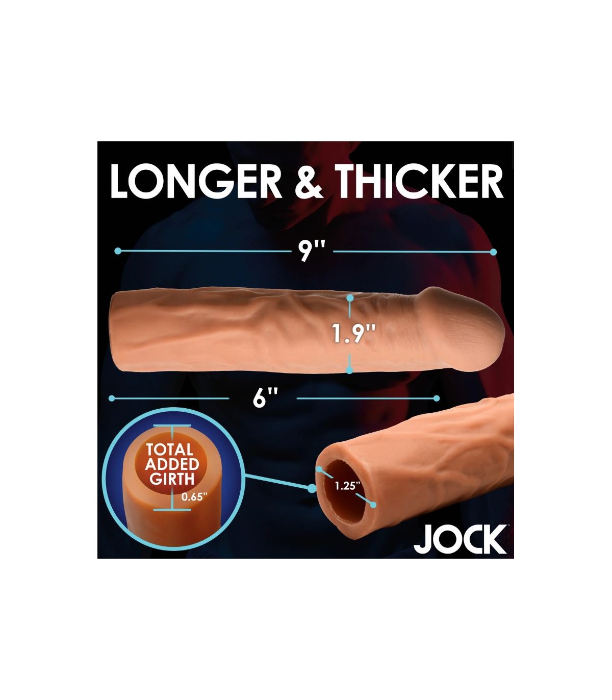 - ¡Gane tamaño en segundos!: Al deslizar esta funda para pene en su varilla, inmediatamente agrega 7'62 cm de longitud y 1'6 cm de circunferencia.