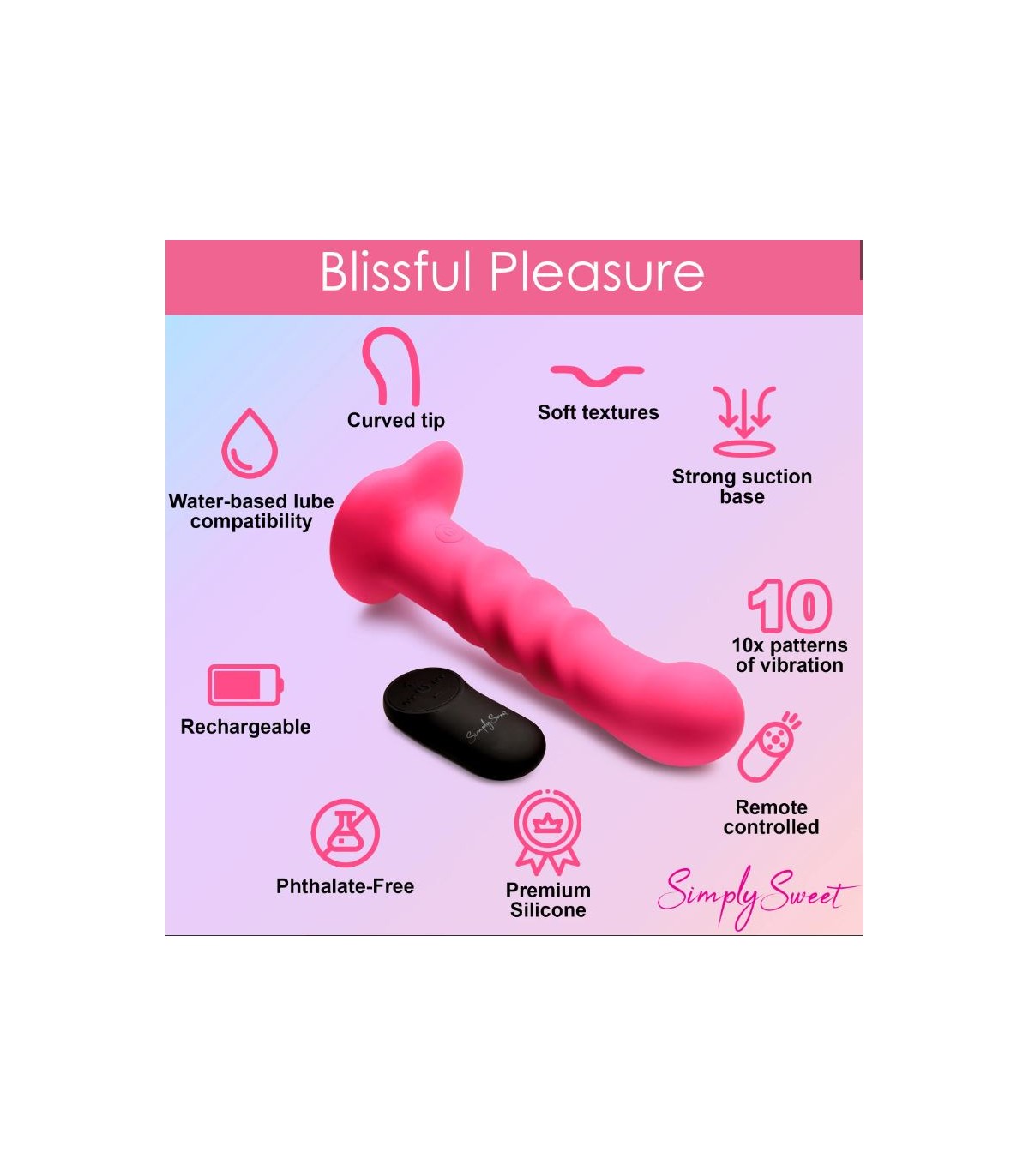Consolador de silicona dulce: este consolador de silicona de primera calidad, libre de ftalatos y seguro para el cuerpo tiene 3 deliciosas costillas a lo largo del eje, una cabeza redonda y una ligera curvatura en el eje. La silicona suave y sedosa, segura para el cuerpo, no contiene ftalatos.