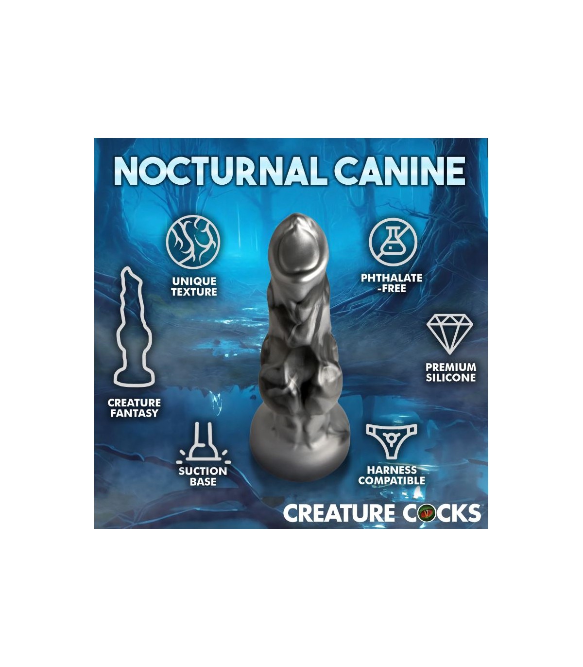 - Consolador de fantasía: plateado y negro ahumado, esta vara de bestia de perro lobo tiene una punta cónica, un eje grueso y 4 nudos abultados sobre la base.