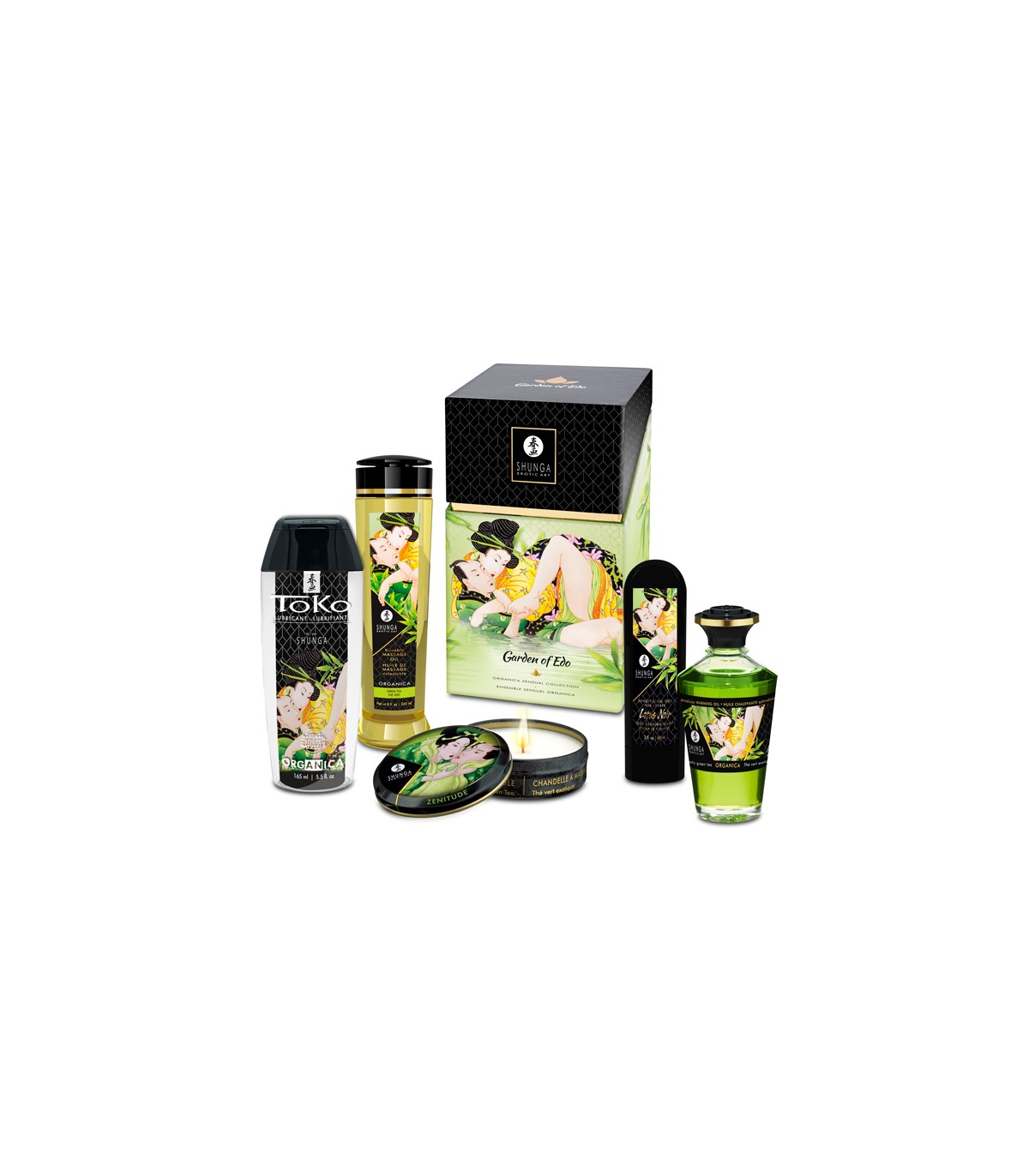 La nueva versión de esta colección, que anteriormente se ofrecía en una lata negra alta, se presenta en una caja rectangular negra y verde. Los Cristales Orientales que anteriormente se ofrecían en el kit EDO serán reemplazados por una pequeña vela de Té Verde Exótico para ayudar a crear el ambiente para los amantes apasionados por la naturaleza.