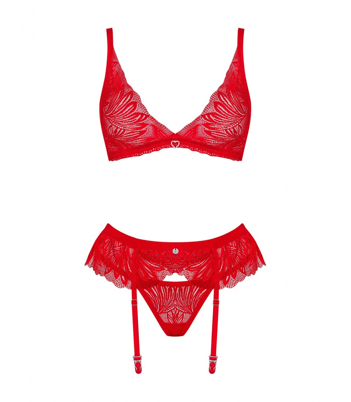 Conjunto Chilisa rojo compuesto por liguero, tanga y sujetador