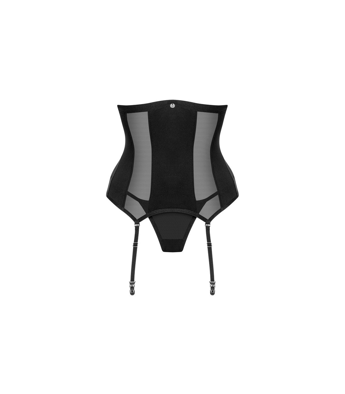 Si te gusta el minimalismo con un toque diferente, el corsé y el tanga Chic Amoria te robarán el corazón. Solo mira estas rayas geométricas: ¡qué bellamente acentúan tu figura! Junto con la malla transparente, crean una combinación atractiva que no se puede ignorar. Gracias a los tirantes desmontables, puedes añadir medias sexys a este conjunto en cualquier momento. ¡La elección es siempre tuya!Mira los detalles: