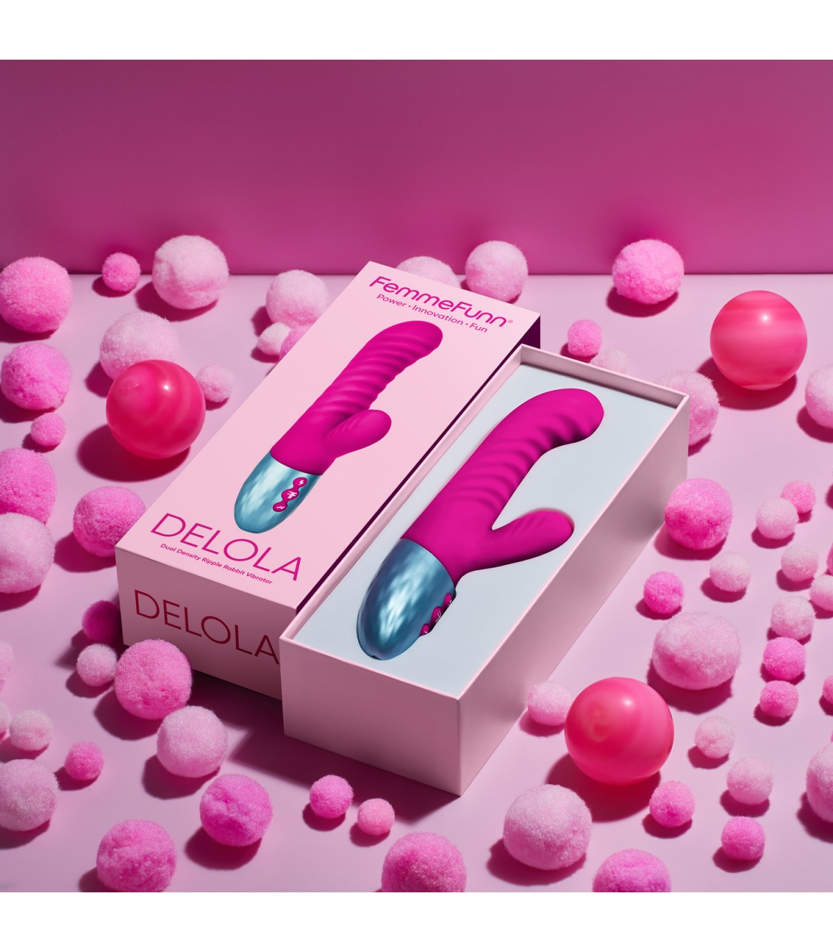 A Delola, nuestra vibra de conejo de doble densidad, le gusta para provocar y complacer. Capas de experiencia de sensación con su núcleo de silicona firme, sedoso Cuerpo de silicona líquida y textura ondulada.