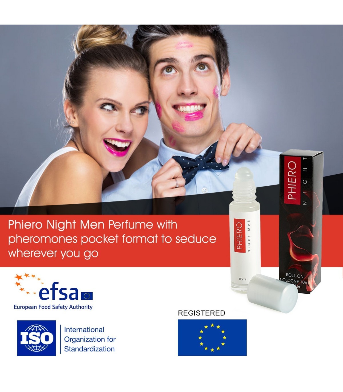 Prueba el novedoso formato roll-on tamaño bolsillo para usarlo en cualquier momento y disfrutar del poder de conquista y confianza que genera. Uso: vía tópica - Formato roll-on de 10 ml. No tiene efectos secundario y es totalmente seguro, como cualquier otro perfume.