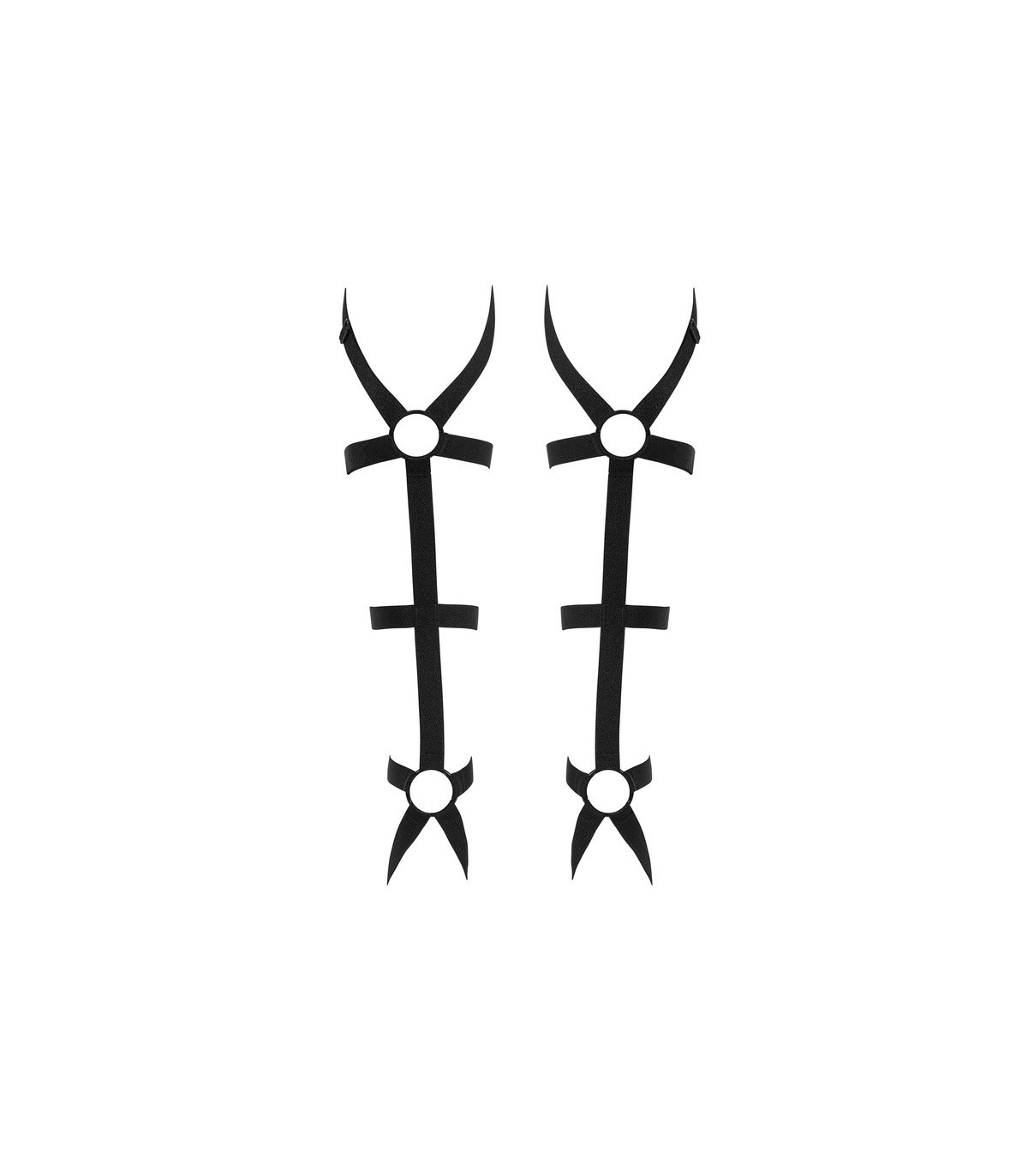 ¿Planeas agregar un poco de estilo a tu conjunto? Rompe la rutina y enciende los sentidos con estos arneses para piernas poco convencionales de Armares que serán un complemento maravilloso para tu conjunto, formando un elegante par con un corsé, un peluche o otra lencería sexy El negro intenso de las tiras de tela envolverá coquetamente tus pies y pantorrillas, enfatizando la belleza de tu cuerpo. Atrévete a experimentar y no te arrepentirás.
