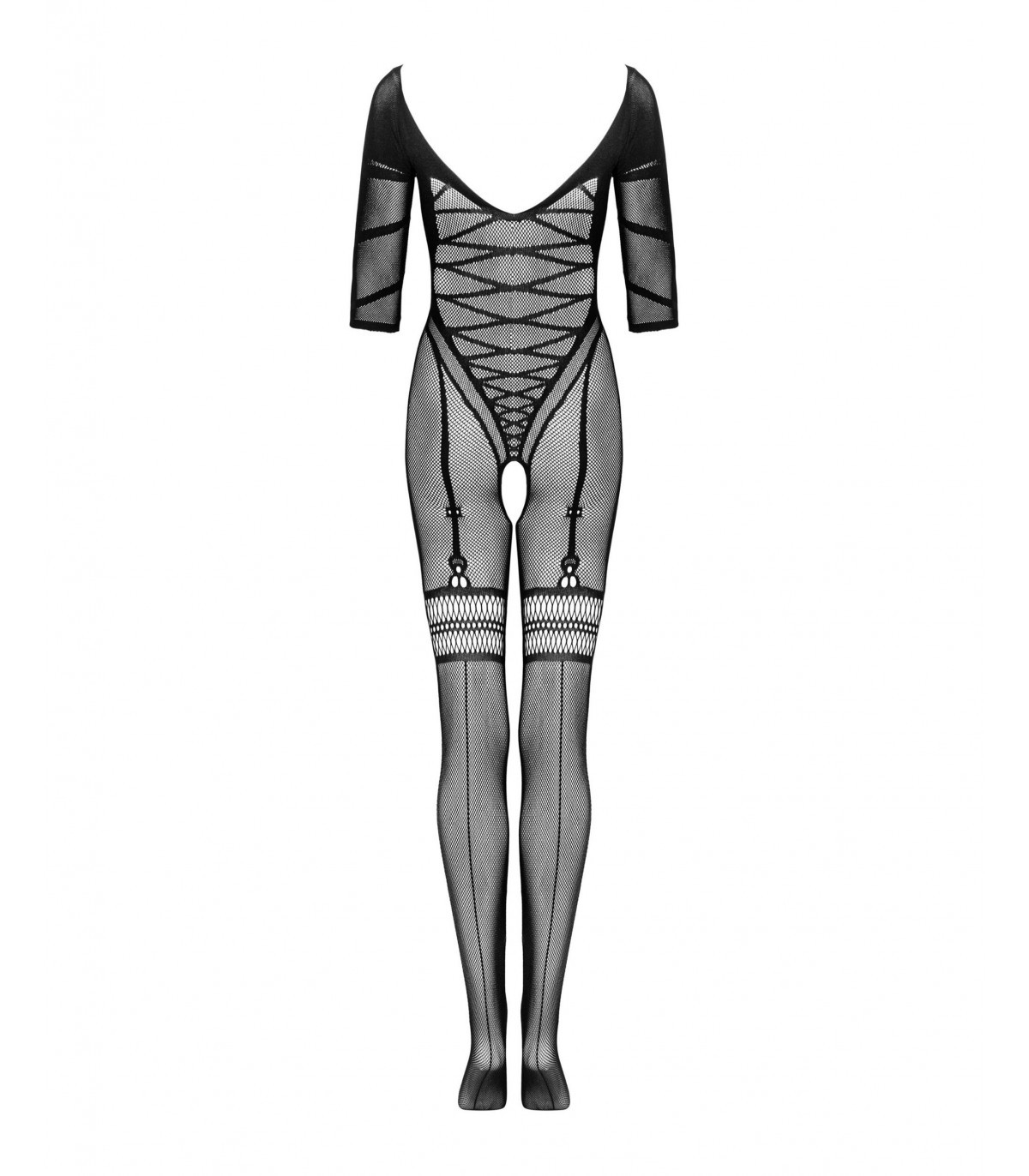 ¡El diseño moderno e increíblemente tentador del bodystocking G329 llama la atención y hace que la temperatura de la noche suba en un abrir y cerrar de ojos! Los estampados sensuales en la parte delantera y trasera, imitando un lazo regulador, son un elemento extremadamente picante que ópticamente estiliza y realza la figura El corte sexy de las medias decorará perfectamente las piernas y el trasero, animándote a pasar momentos aún más calientes en el dormitorio.
