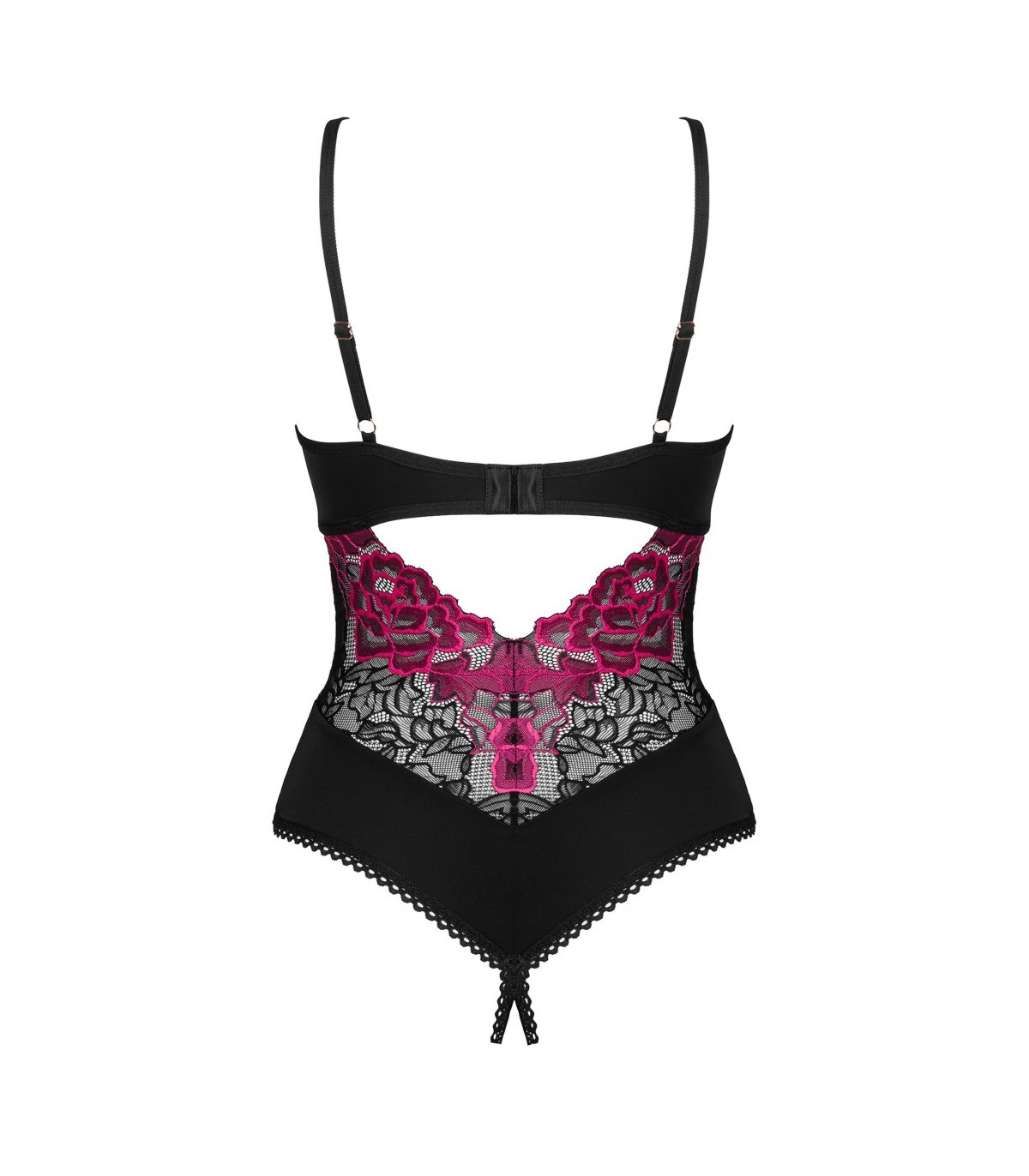 Prepárate para una velada romántica a la luz de las velas y enciende la llama de la pasión en el corazón de tu ser querido. El peluche negro Rosenty con una entrepierna seductoramente abierta te ayudará y al mismo tiempo te presentará los secretos del placer irresistible. Deja que el suave material envuelva tu cuerpo con comodidad y realce tu figura, y los detalles sutiles harán imposible que nadie deje de mirarte.