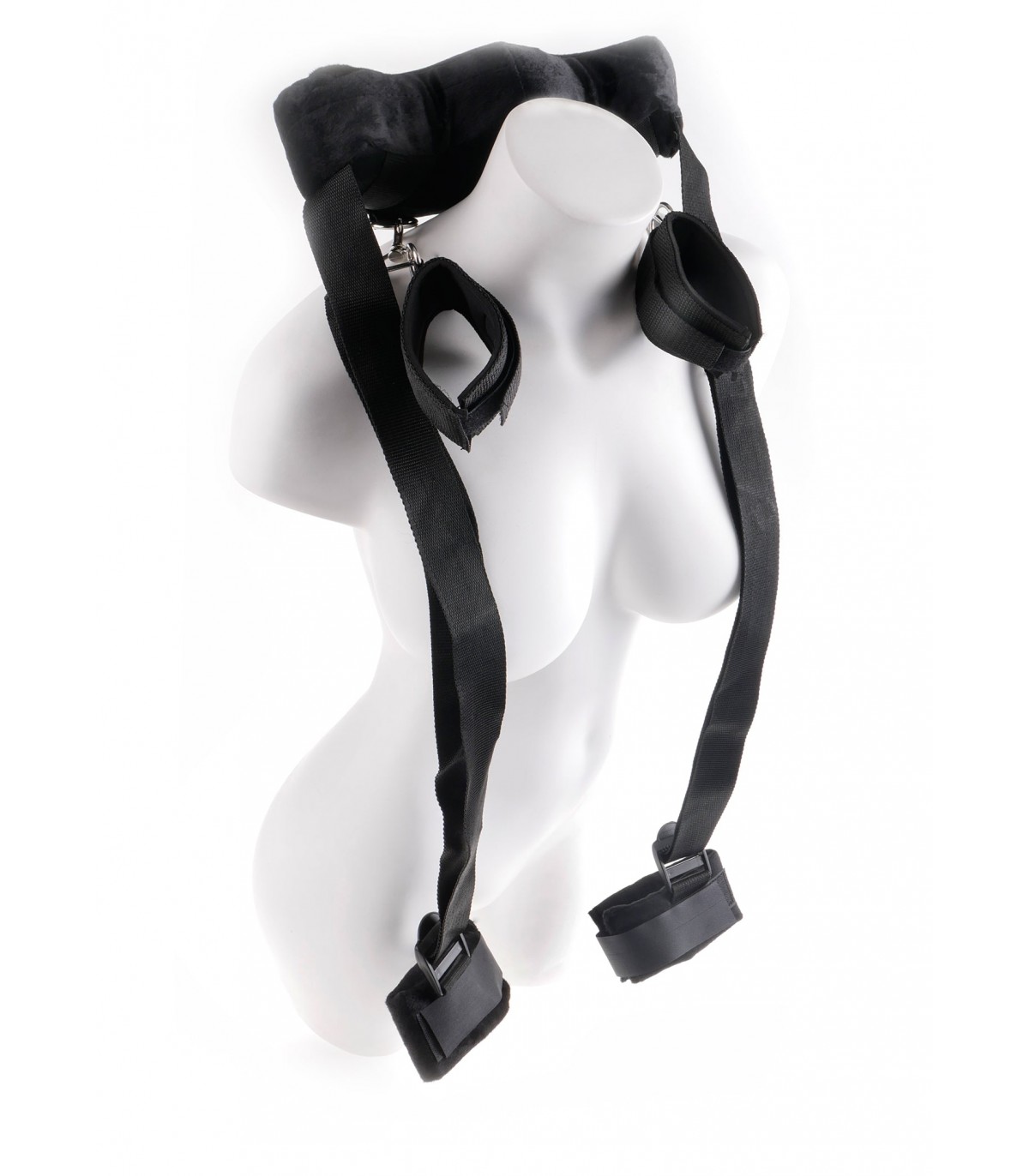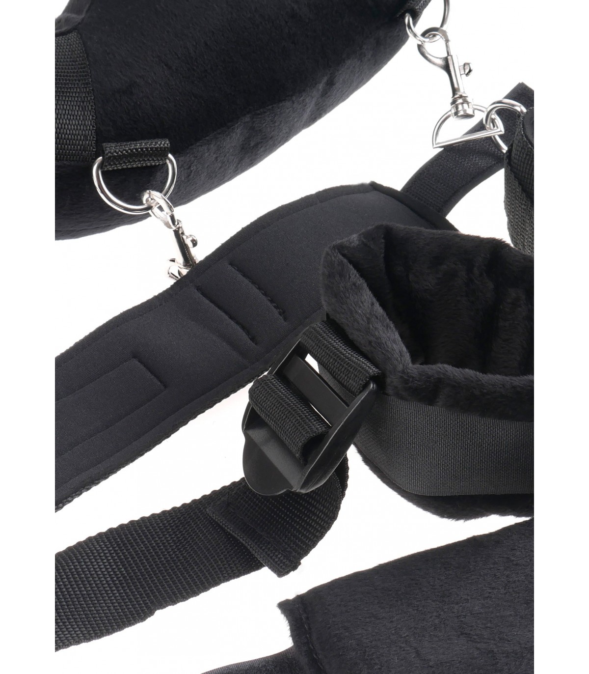 Deja que tu imaginación te lleve más allá de tus límites físicos con el Position Master con esposas. Las resistentes correas sujetan tus piernas firmemente en su lugar para que no se cansen justo cuando las cosas se ponen buenas, mientras que las esposas para las muñecas aseguran que tu sujeto no se escape pronto. El arnés para el cuello es suave y acolchado, lo que permite la máxima comodidad. Las correas se ajustan rápida y fácilmente con un simple tirón, por lo que controlas la colocación de tus piernas en cualquier momento durante el juego. ¡Asume la posición y sé el amo de tu próximo encuentro!
