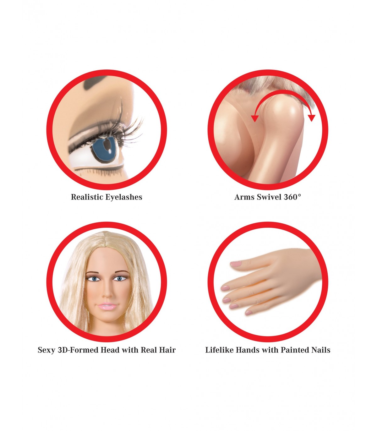 Esta increíble muñeca inflable de tamaño real de Hannah Harper fue diseñada meticulosamente con características realistas para una experiencia verdaderamente realista. Su cabeza sexy en forma de 3D presenta pestañas realistas y una lujosa cabellera real que pide a gritos que la tires. Observa cómo realmente cobra vida con brazos que giran 360 grados y uñas de los dedos de las manos y los pies deliciosamente pintadas.