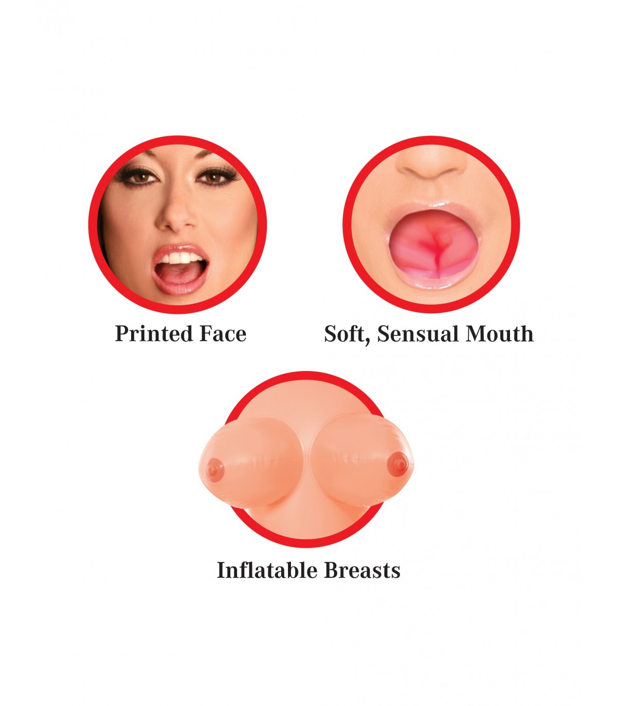 Esta increíble muñeca inflable de tamaño real fue diseñada meticulosamente con características realistas para una experiencia verdaderamente realista. Su rostro sexy impreso presenta una boca abierta suave y sensual que está lista y dispuesta a demostrar hasta dónde puede llegar su garganta.