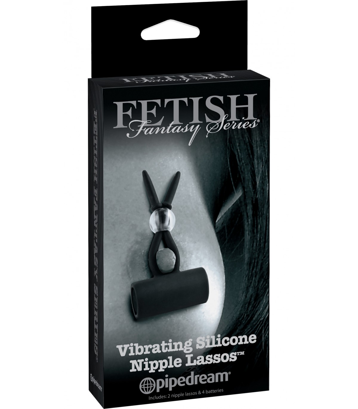 VIBRATING SILICONE NIPPLE LASSOS BLACK